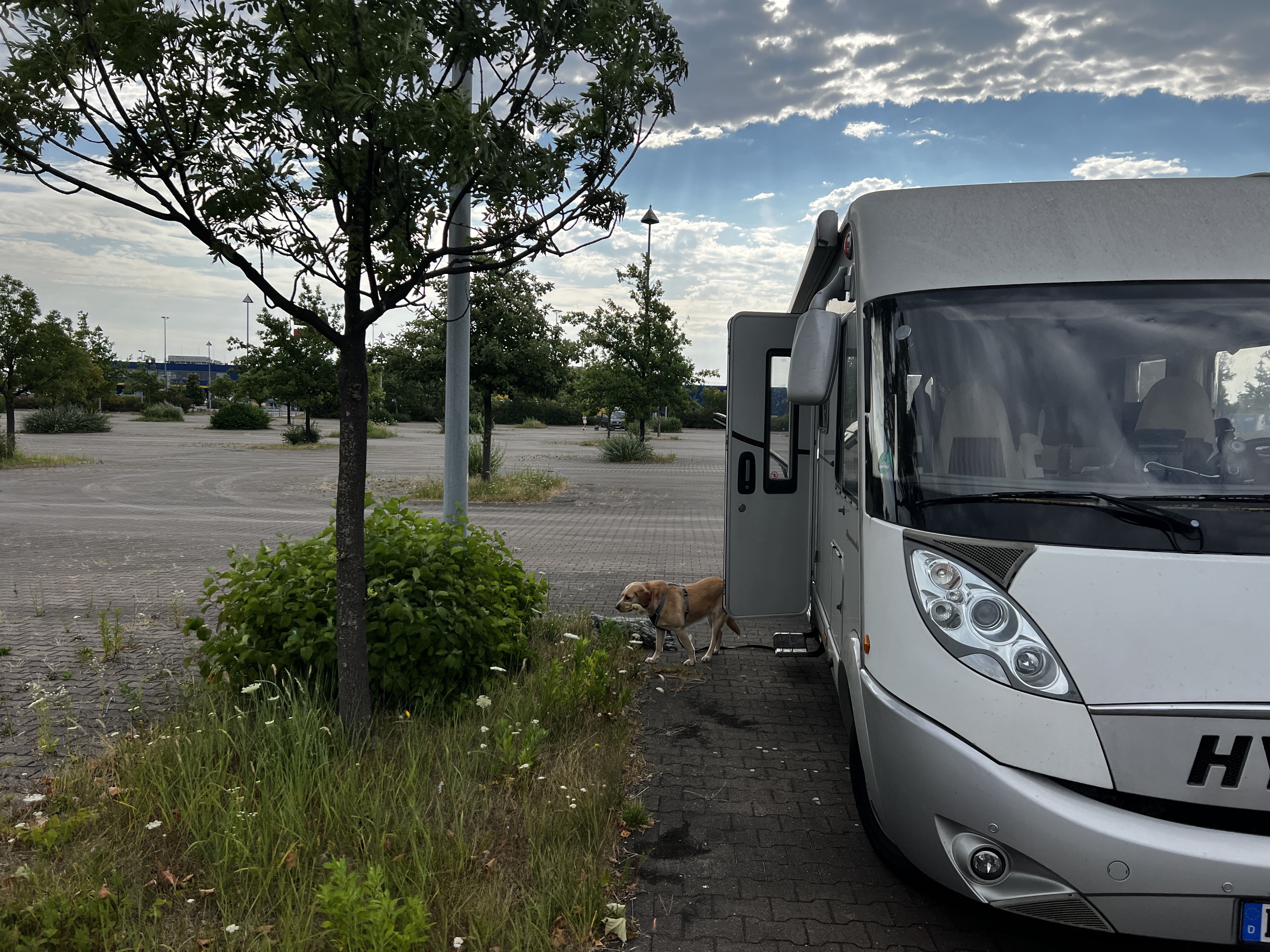 Der Wecker klingelt um 03:00 Uhr morgens. Wir wollen los. Betty ist gepackt und ich konnte sogar 5 Stunden Schlafen. Ich trage meine Tochter aus dem Bett in das Wohnmobil und schnalle sie an. Der Sohn ist mir zu schwer, der muss laufen. Um 03:25 Uhr starte ich den Motor und wir fahren los. Komisch, niemand sagt das er was vergessen hat…. Die ersten Kilometer sind vertraut, nach 45 Minuten das Bremer Kreuz, nach nochmal 35 Minuten sind wir in Walsrode. Die Autobahn ist noch angenehm leer. Kein Wunder auf einem Donnerstagmorgen. Bei Hannover geht es von der A7 auf die A2 Richtung Berlin. Magdeburg rechts abbiegen auf die A14. Dann auf die A9 und erstmal entsorgen. Wir fahren noch die Rest der letzten Tour mit uns rum und Wasser ist wenig im Tank. Bei der Firma Fa. Klaus Siemon – Wohnwagen und Reisemobile in Schkeuditz kann mal die Toilette kostenlos entsorgen und Wasser auffüllen. Das kostet aber 2,00 Euro. Grauwasserentsorgung geht dort nicht. Aber toller Service. Gefunden habe ich den Platz mit der App Park4night. Nach dann doch schon ein wenig Fahrt machen wir Rast auf dem Parkplatz beim IKEA Einrichtungshaus Halle/Leipzig.