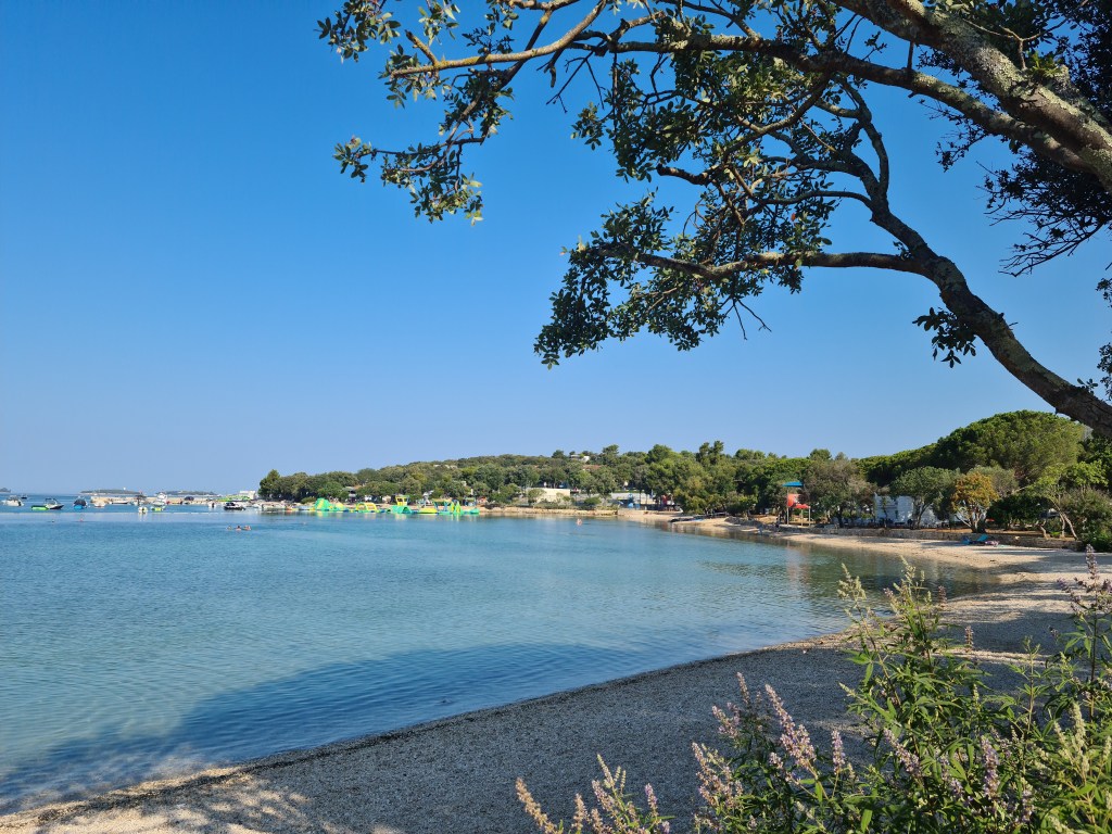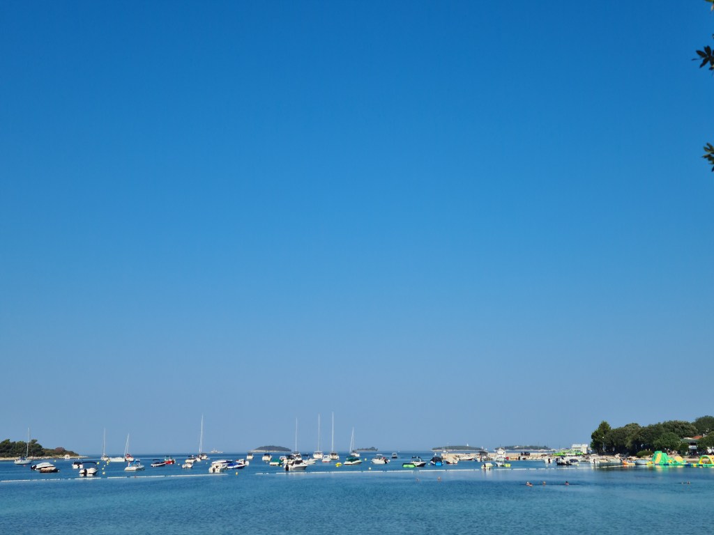 Am Platz kann man unterschiedliche Touren buchen. Auch gibt es ein Wassertaxi nach Rovinji und eine Sunsettour mit evtl. Delphinsichtung. Die buchen wir mal. In der Facebookgruppe vom Camping Platz wurde immer eine Tour besonders gelobt. Da verlassen wir uns mal drauf und buchen bei der Dame mit dem Schiff „No Name“ Der Hund darf auch mit, na das wird ja was. Am Donnerstag machen wir die Tour. Am Abend wird es kühler auf dem Platz aber nicht besonders. Wir machen es uns gemütlich auf der Parzelle und lassen den Tag ausklingen. Bis morgen dann evtl.