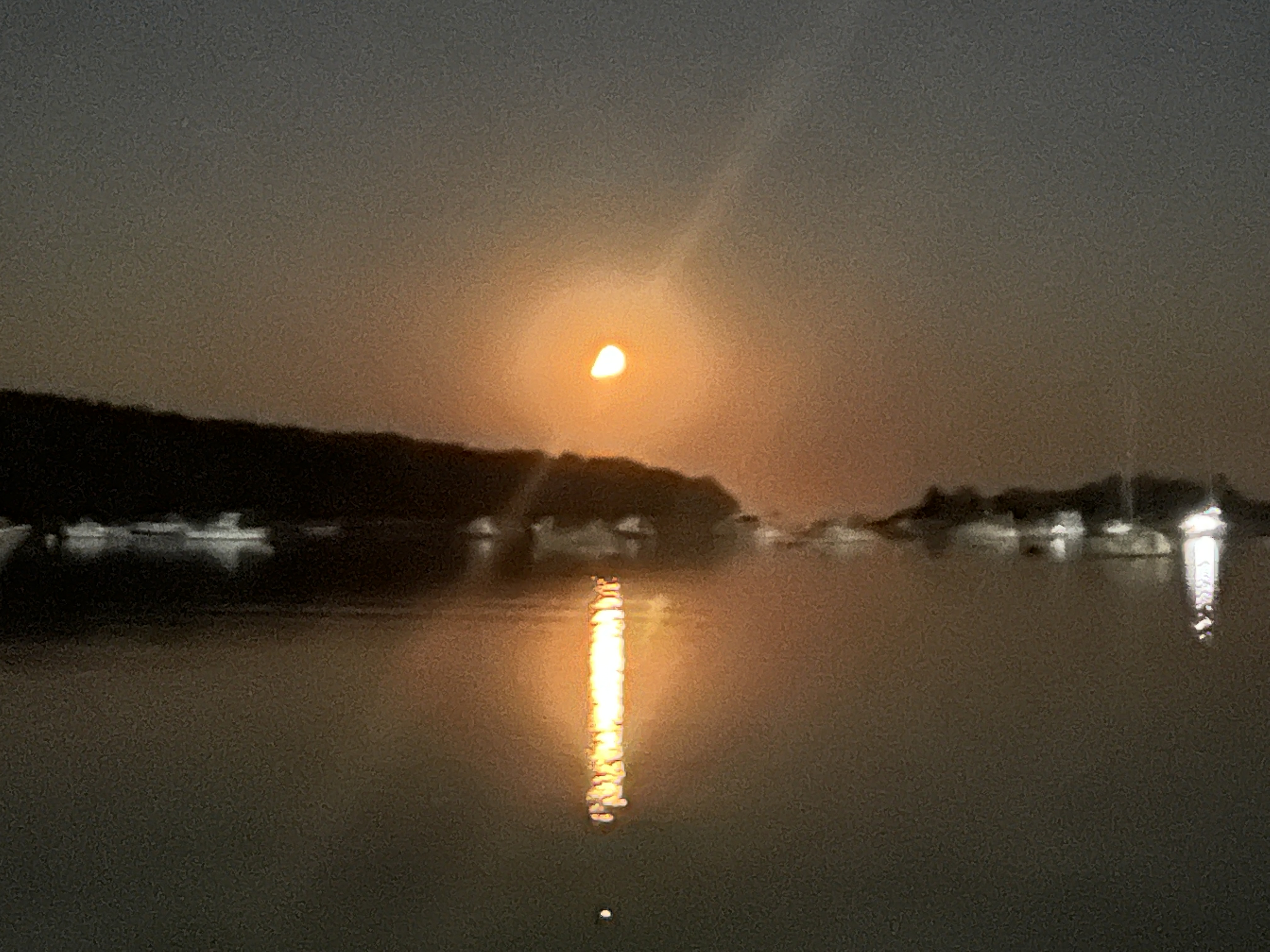Nach dem Duschen sitzen wir noch ein draußen und ich trinke noch die letzten Bierchen aus. Dann wird die Kühlbox ausgeschaltet, das Verlängerungskabel eingepackt und die letzten Flaschen in den Kühlschrank gestellt. Morgen früh geht es auch früh raus, möchten gegen 09:30 Uhr vom Platz fahren. Mal schauen ob das klappt. Mit einem letzten Mondbild, verabschieden wir uns vom Platz.