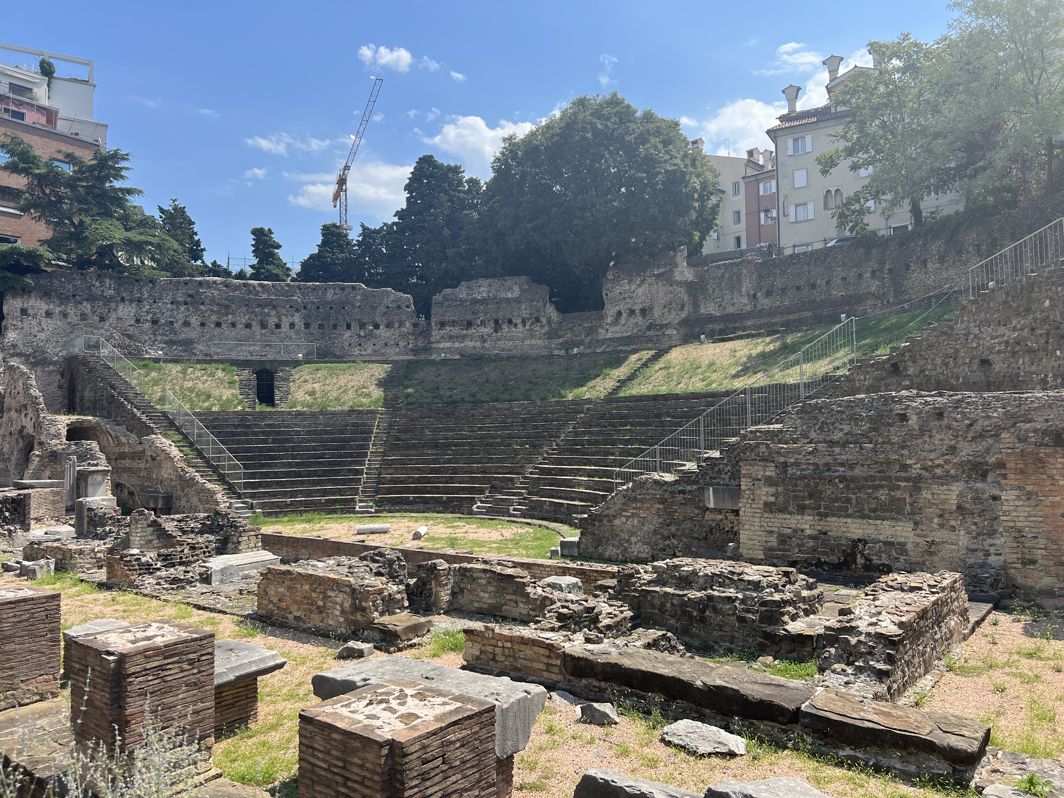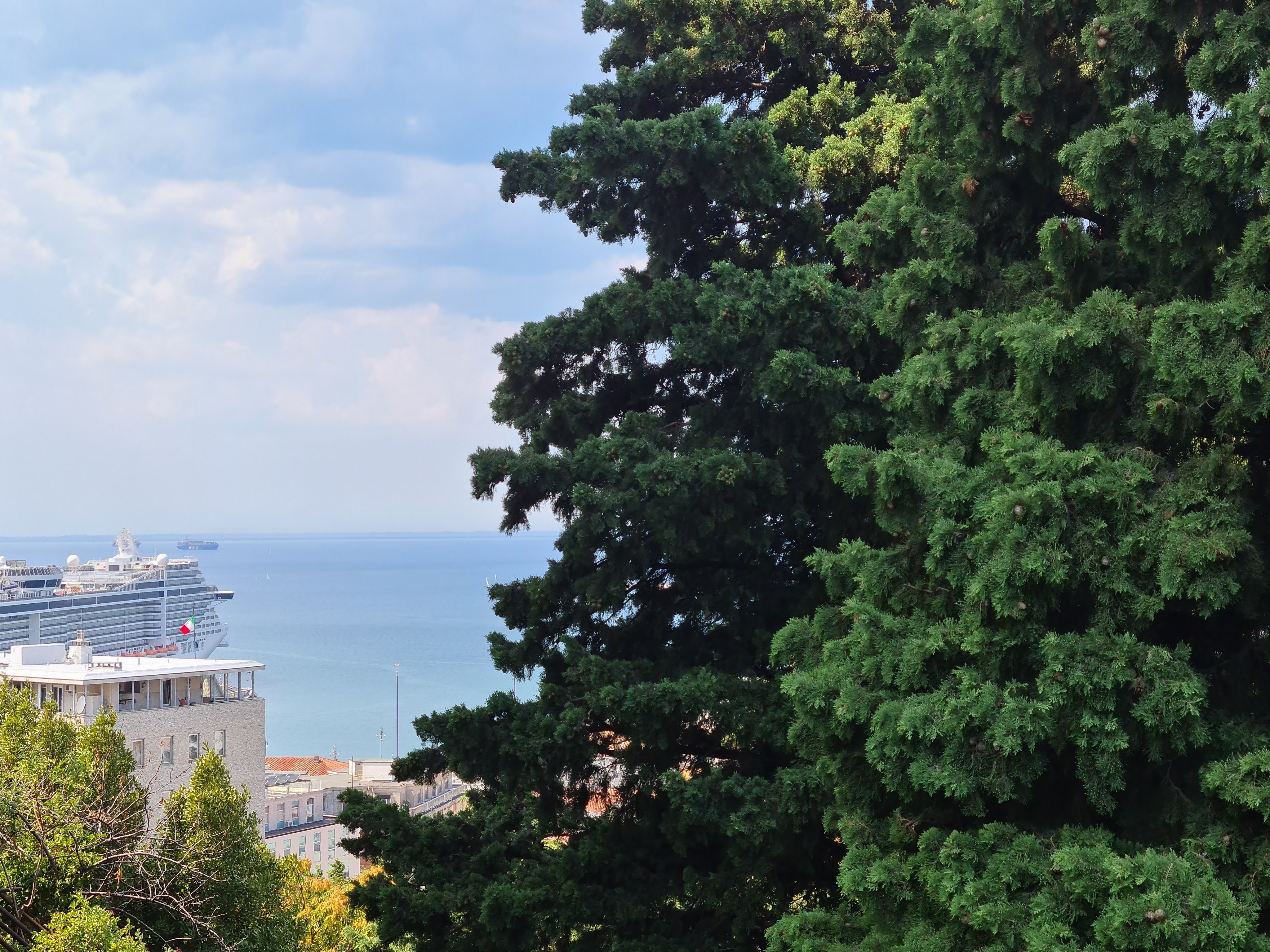 Da das Thermometer wieder über 32 Grad anzeigt suchen wir einen Park auf. Wir finden den Parco della Rimembranza, ein über Treppen erreichbarer Aussichtspunkt auf einem Hügel mit Wiesen, Bäumen und Gedenksteinen für die Kriegsopfer der Stadt.
