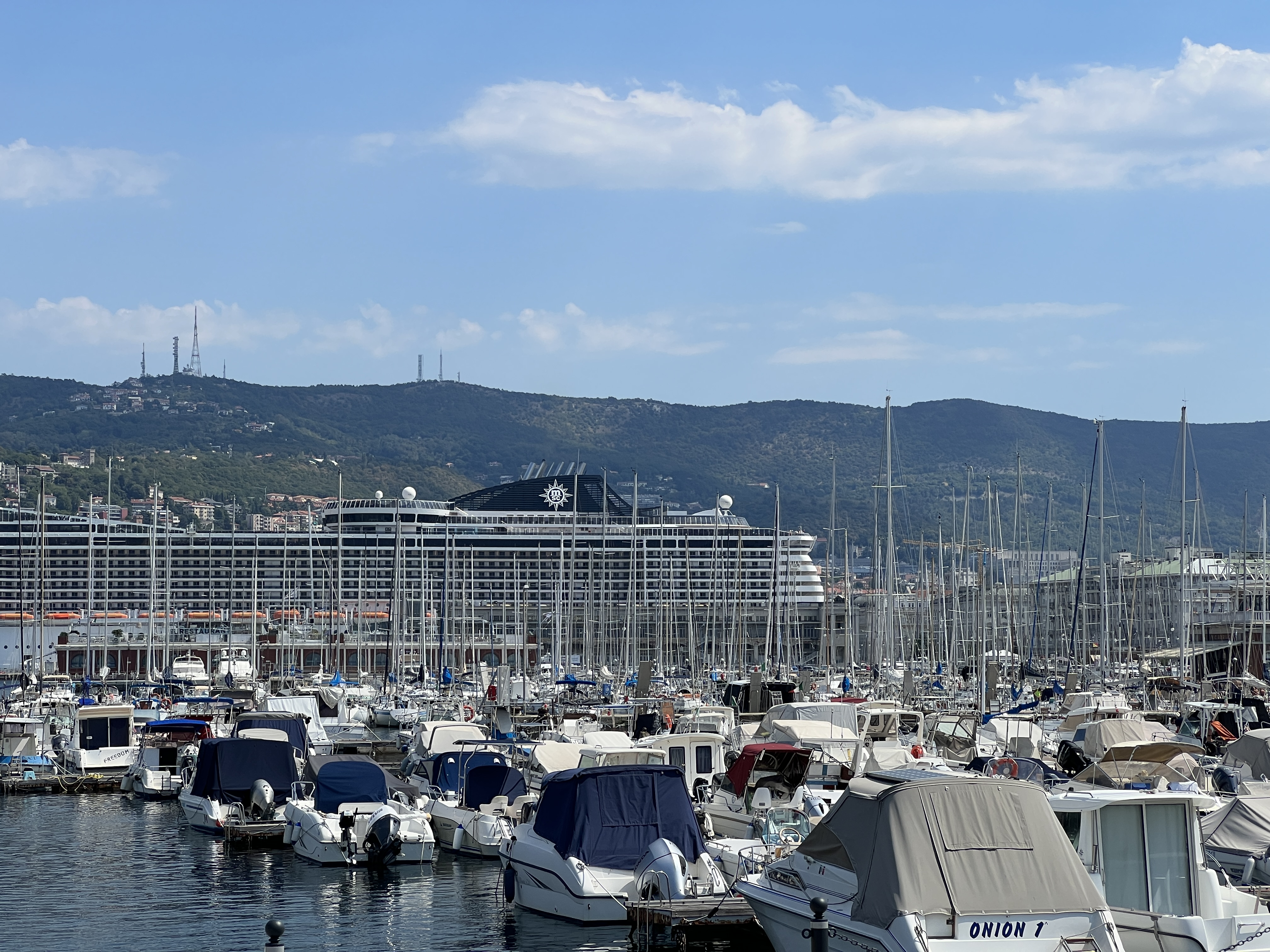 Nun geht es los nach Hause, mit Zwischenstopps natürlich. Der erste Stopp soll Triest sein. Hier werden wir unseren Sohn verkaufen und alleine weiterfahren. Ach nee, sein Kumpel kommt mit dem Kreuzfahrtschiff an und nimmt ihn mit nach Frankreich. Wir kommen Rechtzeitig lois und entsorgen erstmal unser Grauwasser, war auch notwendig, Tank war voll. Dann noch Wasser auffüllen und los kann es gehen. Pünktlich um 09:00 Uhr. Nachdem wir noch die letzten Kunaś ausgegeben haben für Frühstück.