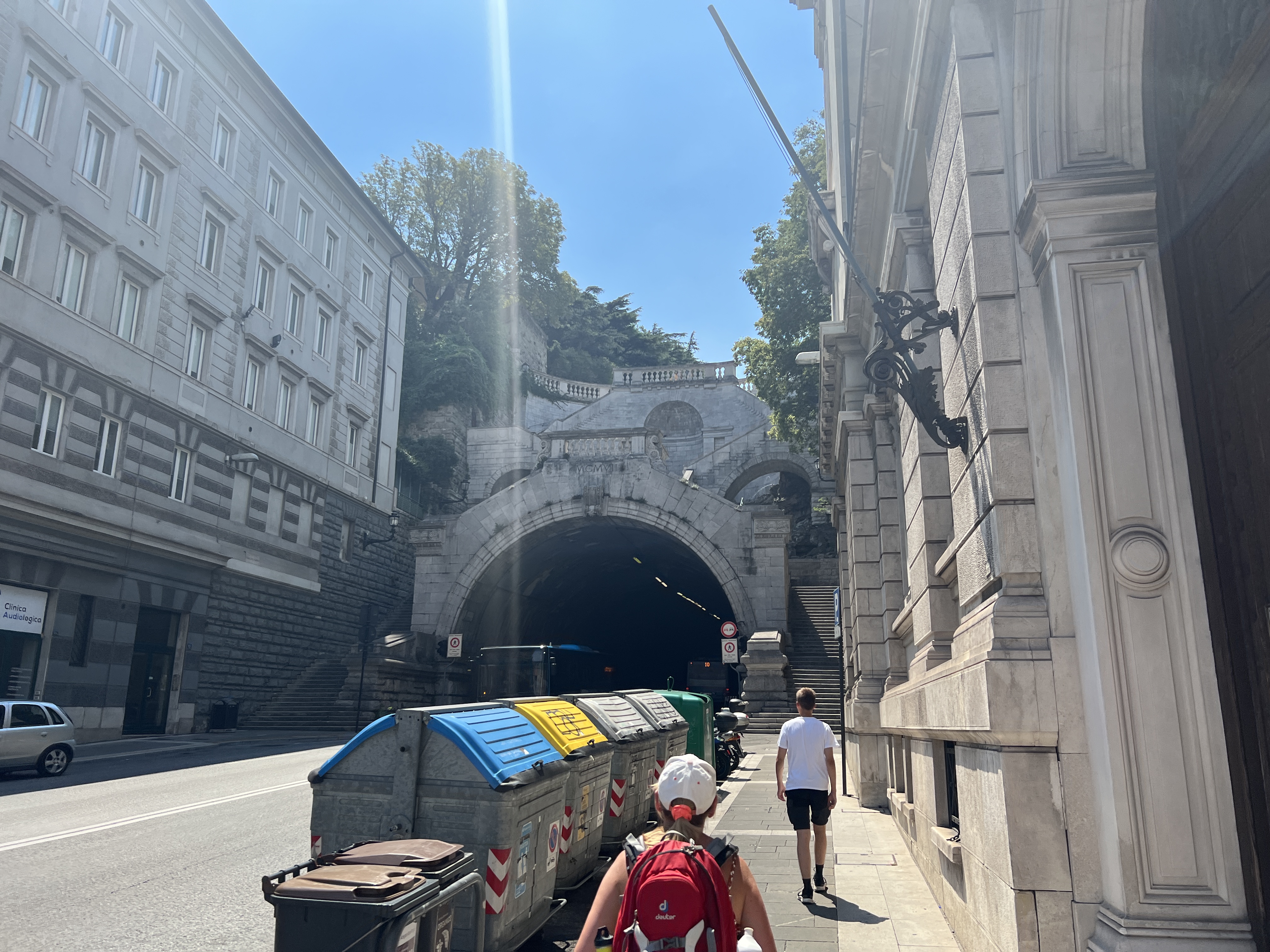 Irgendwann erreichen wir die Kroatisch/Slowenische Grenze und können den Kinder mal zeigen wie es früher in Europa an den Grenzen aussah. Wartezeit ca. 45 Minuten. Zwei Spuren waren geöffnet und leider versteht nicht jeder auch beide Spuren zu nutzen. Dann weiter über die Landstraße bis auf einmal Koper auftaucht, dann kommt ein Tunnel und auf einmal heißt es: