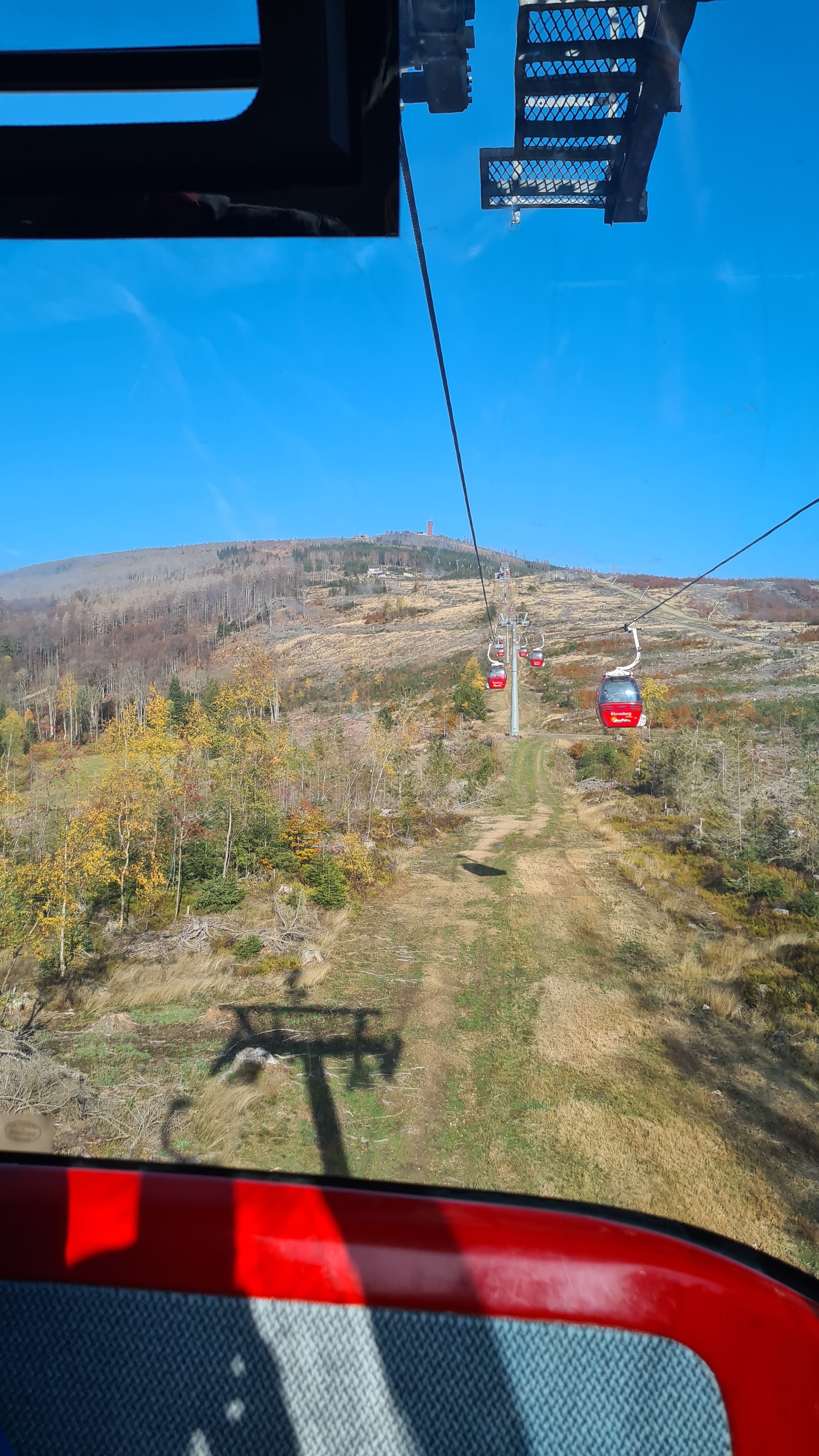 Die Fahrt nur auf den Berg rauf kostet am 30. Oktober 2022 für uns alle zusammen 40,50 Euro. Dem Hund ist die Fahrt nicht geheuer und so entspannt er sich am Anfang nicht.