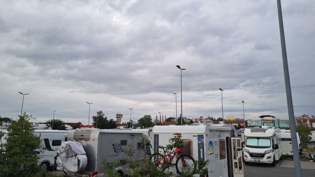 Nach dem Essen wird die Hunderunde eingeleutet. Der Hund hat nur irgendwie keine Lust. Erst als wir alle aus dem Mobil raus sind erbarmt sich der Hund mit uns zu gehen. Nach unserer Rückkehr werden die Betten gebaut. Selbst der große Sohn will ins Bett. Das soll was heißen. Morgen geht es weiter. Ziel Odense.