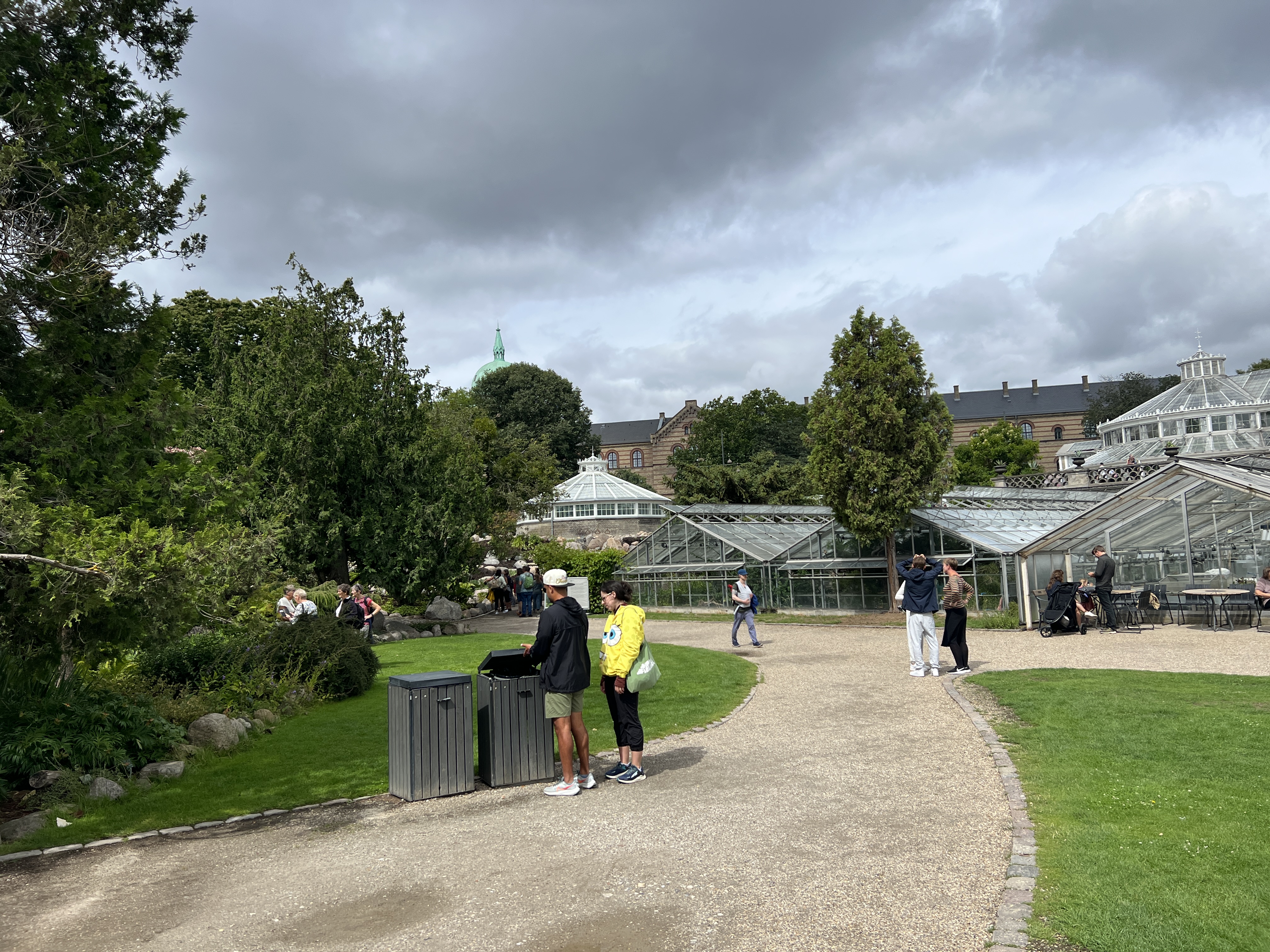 Ist es nicht herrlich wenn der Regen nachlässt? Die Natur riecht dann immer so frisch. Außer man ist an einem Strand und es liegen dort schon etwas länger die Algen herum. Wir wollen heute in die Hauptstadt Dänemarks mit ihren knapp 644.000 Einwohnern. Dänen gelten ja mit als die glücklichsten Menschen der Welt. Vielleicht können wir mal schauen warum das so ist. Nach dem gewohnten Frühstück gehen wir das kleine Stück zu der Bahnstation. Ich hatte mir vorher das App zu buchen der Tickets heruntergeladen. Dieses verspricht in 30 Sekunden die Tickets gebucht zu haben. Tatsächlich, nach der Einrichtung geht das buchen sehr schnell. Der Zug kommt, wir steigen ein und ab geht die Fahrt. In Kopenhagen steigen wir nahe dem Botanischen Garten aus. Sandra kennt den schon und geht außen herum. Die kinder und ich mittendurch. Doof nur, das die eine Hälfte wegen Umbaumaßnahmen gesperrt ist und wir nicht durch kommen. Aber trotzdem ein imposanter Anblick.