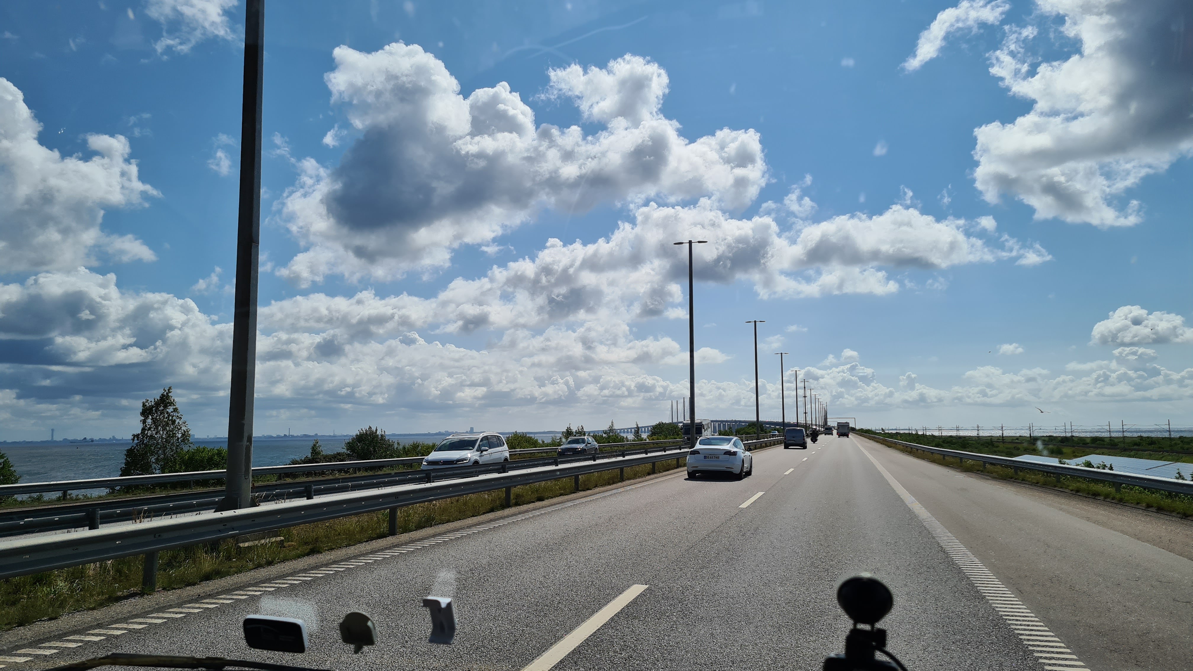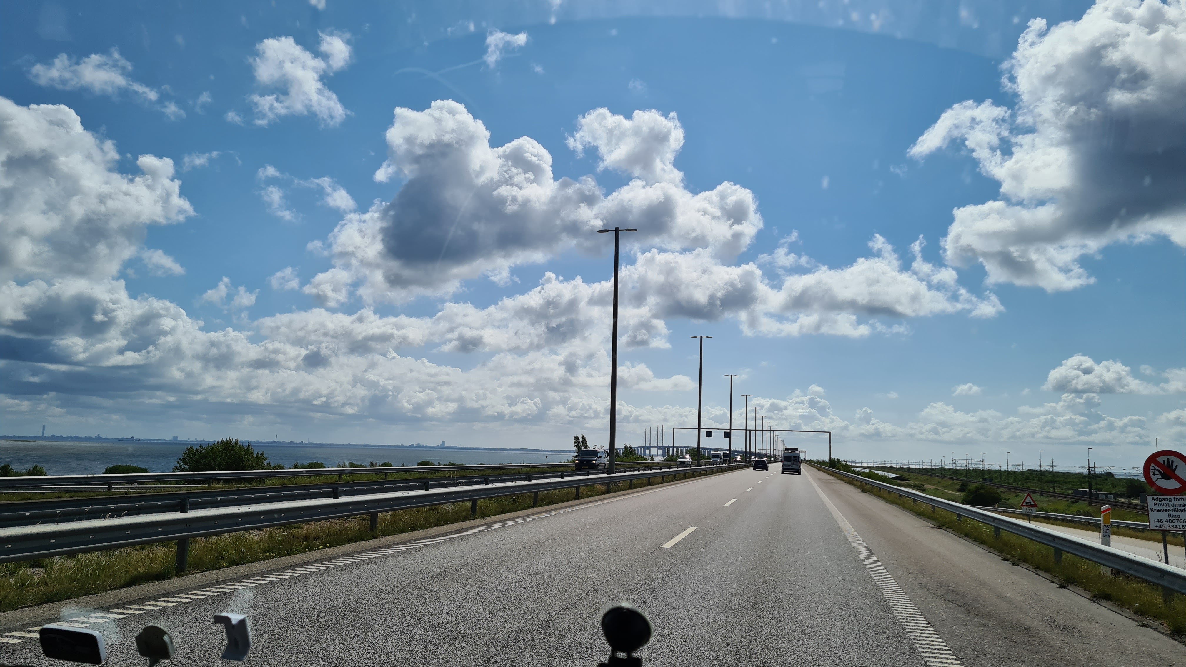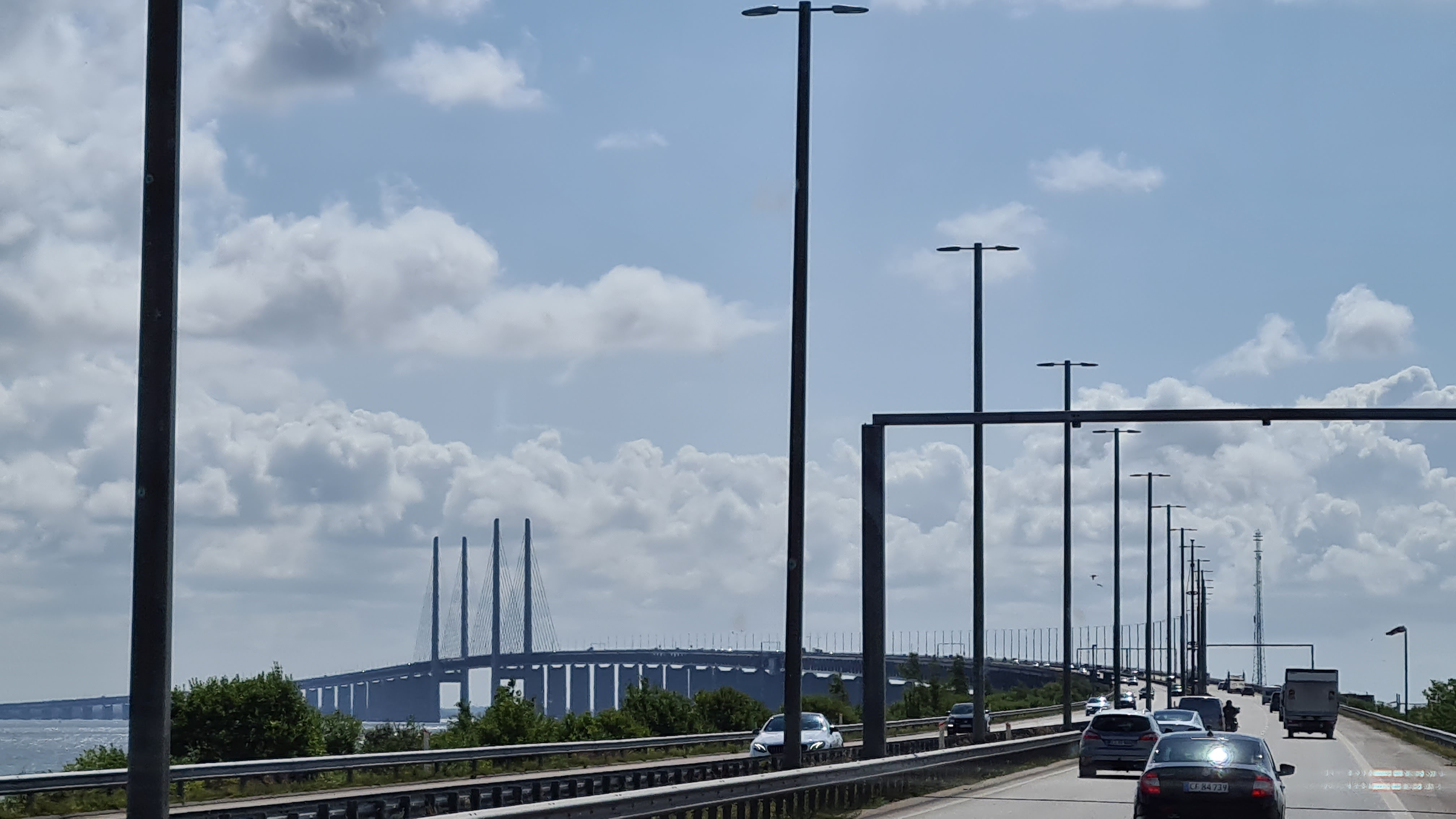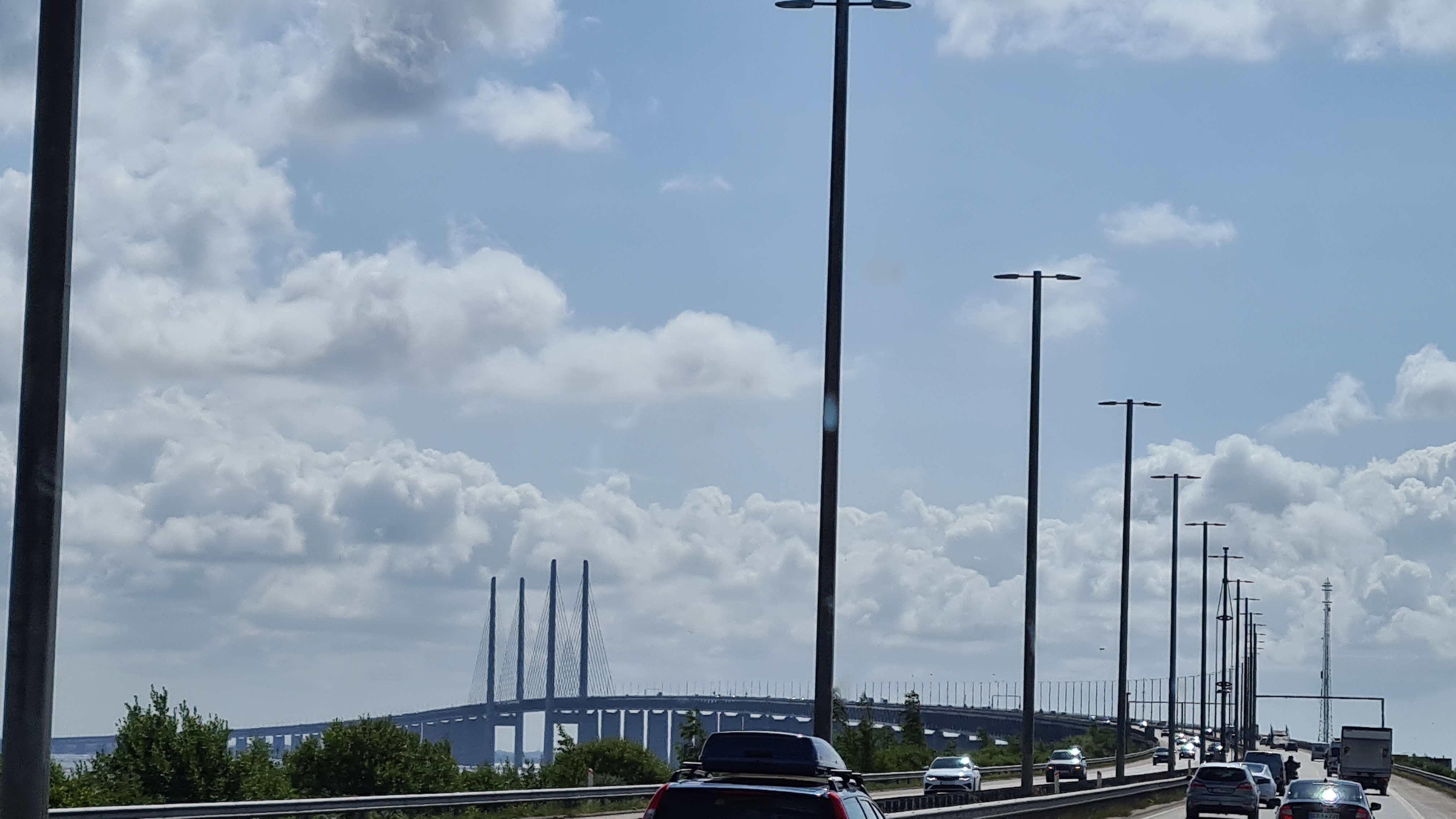 Heute Nacht hat es so heftig geregnet, dass meine Frau alle Fenster schließen musste. Als wir dann zu unserer regulären Zeit aufwachen, war alles so, als ob nie was war. Einige Mobile haben den Platz schon verlassen. Nach dem Frühstück wollen wir auch los. Noch schnell die Toilette entleeren und ab geht es. Ein wenig mulmelig ist uns im Magen, nicht wegen der imposanten Brücke, sondern aufgrund der Erinnerungen von vor zwei Jahren. Da fuhren wir auch nach Malmö und mussten dann den Falck Dienst rufen und unser Wohnmobil wurde abgeschleppt aufgrund eines verstopften Kraftstofffilters. Aber erstmal die Brücke. Die Öresundbrücke ist die weltweit längste Schrägseilbrücke für kombinierten Straßen- und Eisenbahnverkehr. Sie bildet zusammen mit dem Drogdentunnel und der künstlichen Insel Peberholm die mautpflichtige Öresundverbindung, welche die dänische Hauptstadt Kopenhagen mit Malmö in Schweden verbindet. Die Brücke wurde am 1. Juli 2000 dem Verkehr übergeben. Die Gesamtlänge des Brückenzuges beträgt 7845 Meter.
