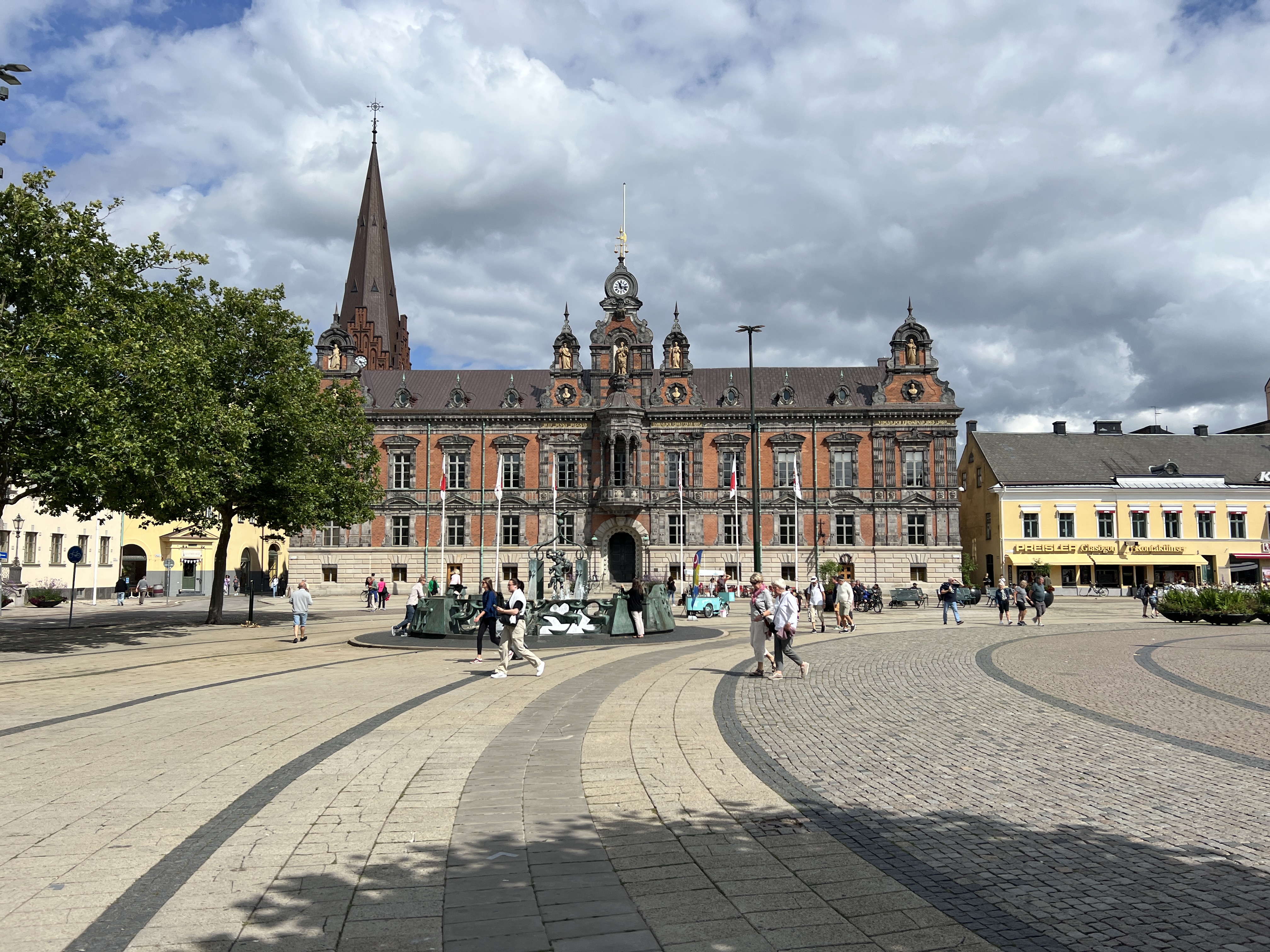 Die Frau und die Kinder gehen in die Ausstellung. 100 Schwedische Kronen für Erwachsene, Kinder bis 19 Jahre frei. Nicht schlecht. Ich darf mit dem Hund draußen warten. Nach über eine Stunde kommen sie wieder an das Tageslicht und wir gehen weiter in die Stadt. Erst zum Rathausplatz oder besser gesagt zum Stortorget. Der um 1540 angelegte Stortorget ist mit einer Fläche von rund 2.500 Quadratmetern der größte und zugleich auch der älteste Platz in Malmö. Ursprünglich war er einmal der größte Marktplatz in Nordeuropa.