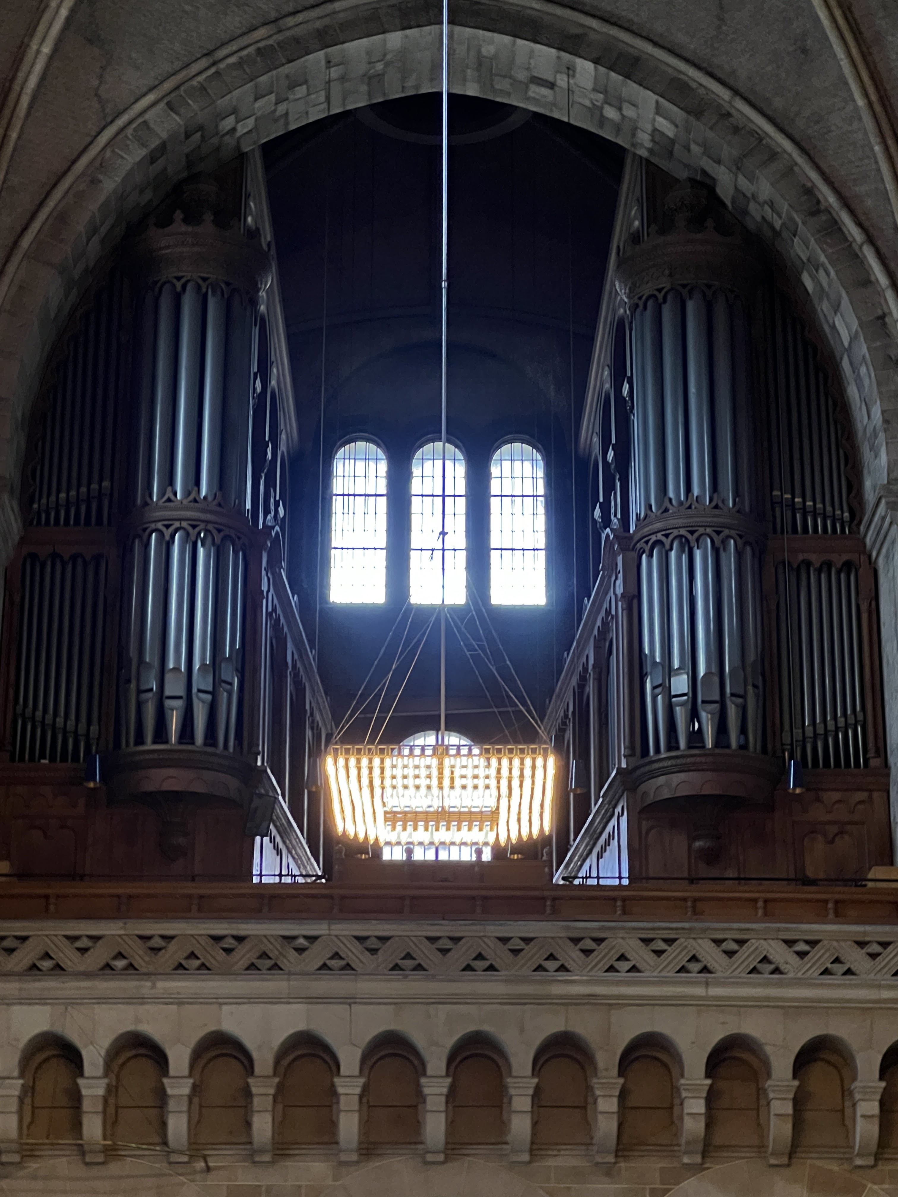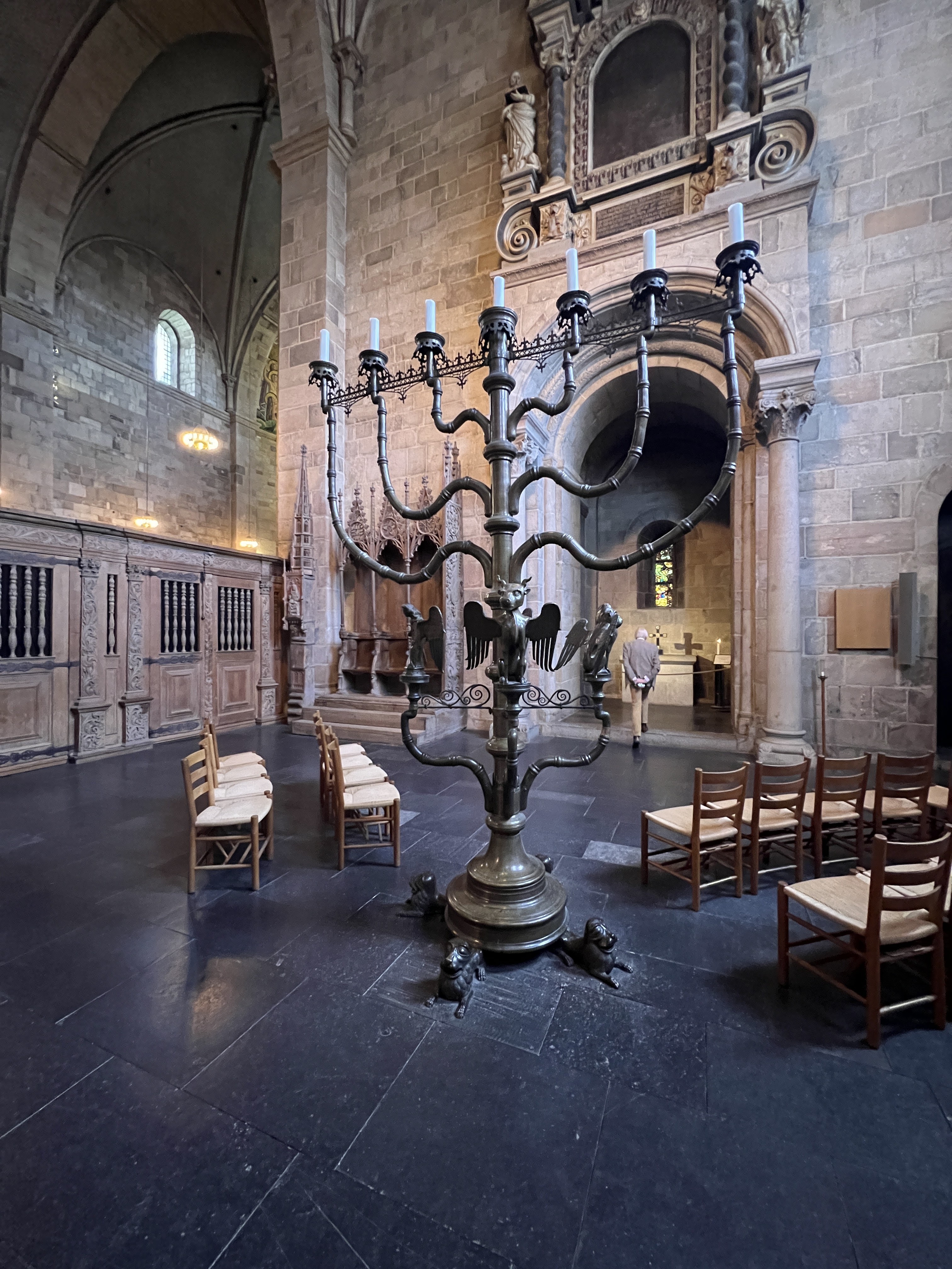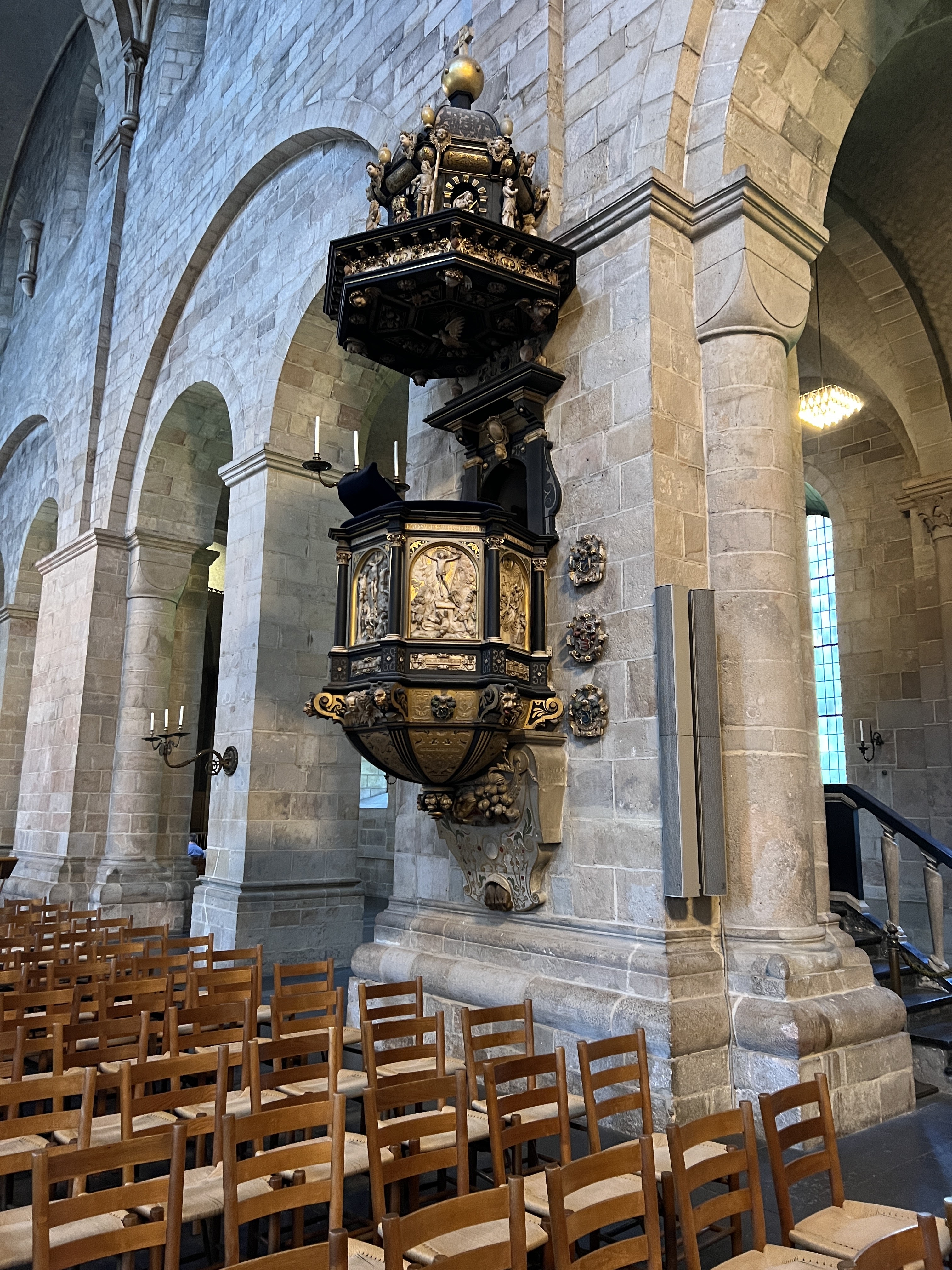 Besondere Beachtung verdienen die vom Haupteingang rechts stehende Uhr mit Glockenspiel und das Mosaik in der Apsis. Die Astronomische Uhr Horologium mirabile Lundense wurde Ende des 14. Jahrhunderts installiert und ist möglicherweise ein Werk von Nikolaus Lilienfeld. Lt. Wikipedia.