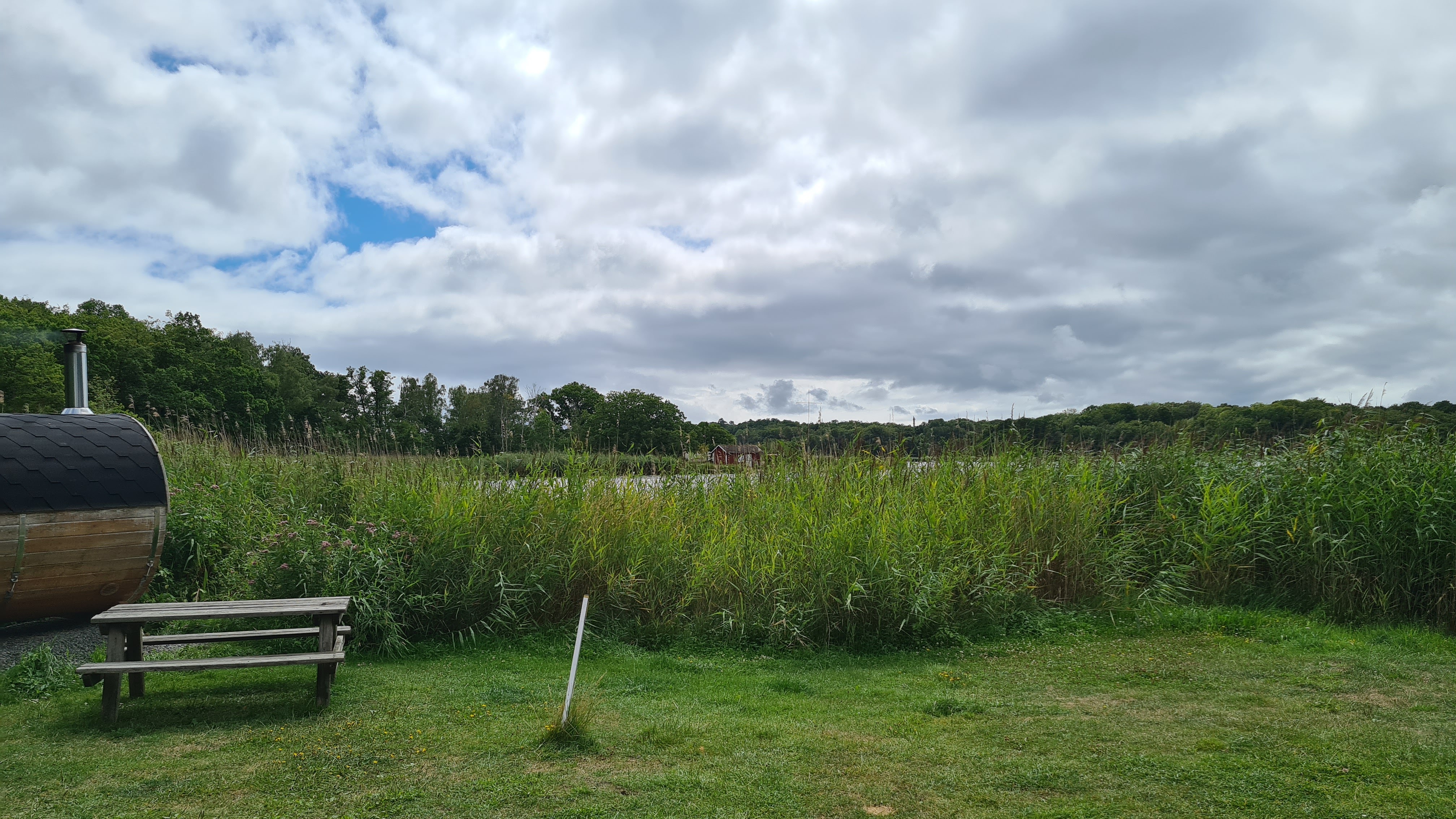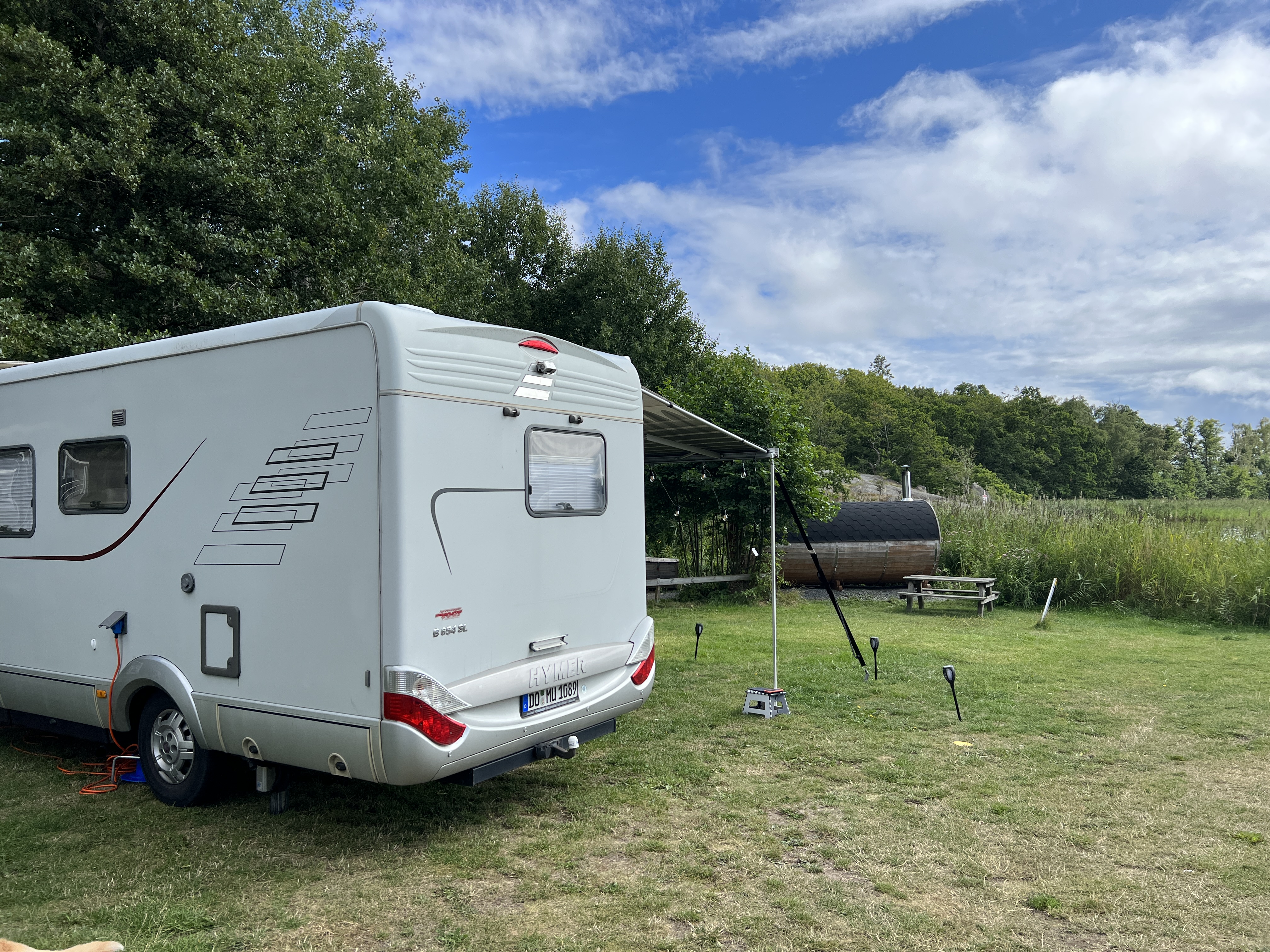 Meine Frau genießt es, mal wieder ein paar Seiten im Buch zu lesen. Der Sohn freut sich über das Datenvolumen am Monatsanfang. Die Tochter spielt mit den Pflanzen aus dem See und ich? Ich schmeiße den grill an und mache Abendbrot. Also nur das Fleisch. Irgendwann greift die Frau unterstützend ein. Zum Abendbrot gibt es noch das schwedische Bier mit 3,5 %. Ansonsten machen wir hier nix. Wir sitzen das erste mal ziemlich lange draußen und genießen den Sommer. Der Hund hat bal keine Lust mehr und wundert sich das wir noch so lange draußen sitzen, während er bereits im Wohnmobil auf uns wartet. Morgen machen wir unsere Aktivitäten vom Wetter abhängig. Bei guten Wetter bleiben wir am Strand, bei schlechten Wetter wollen wir in die Stadt.