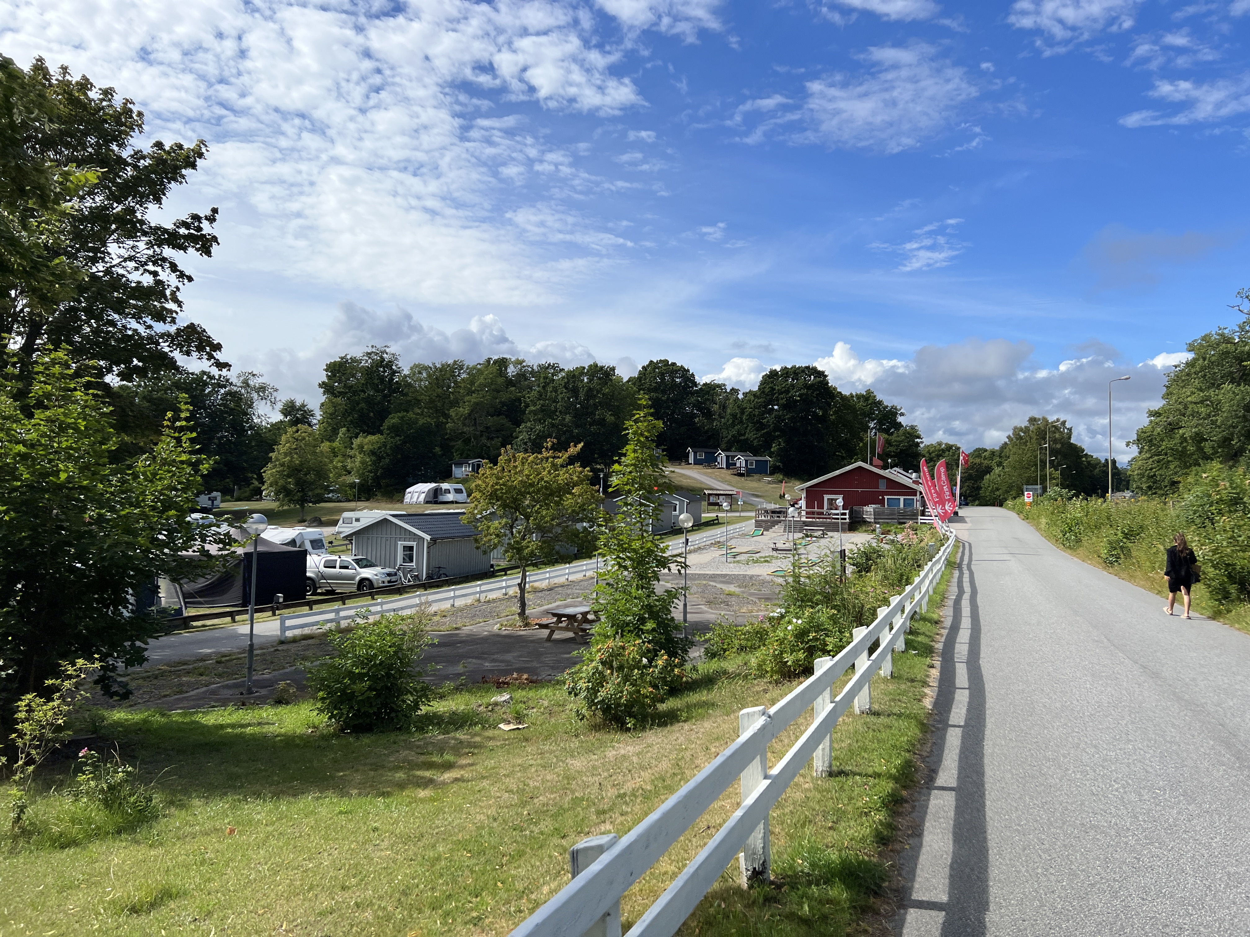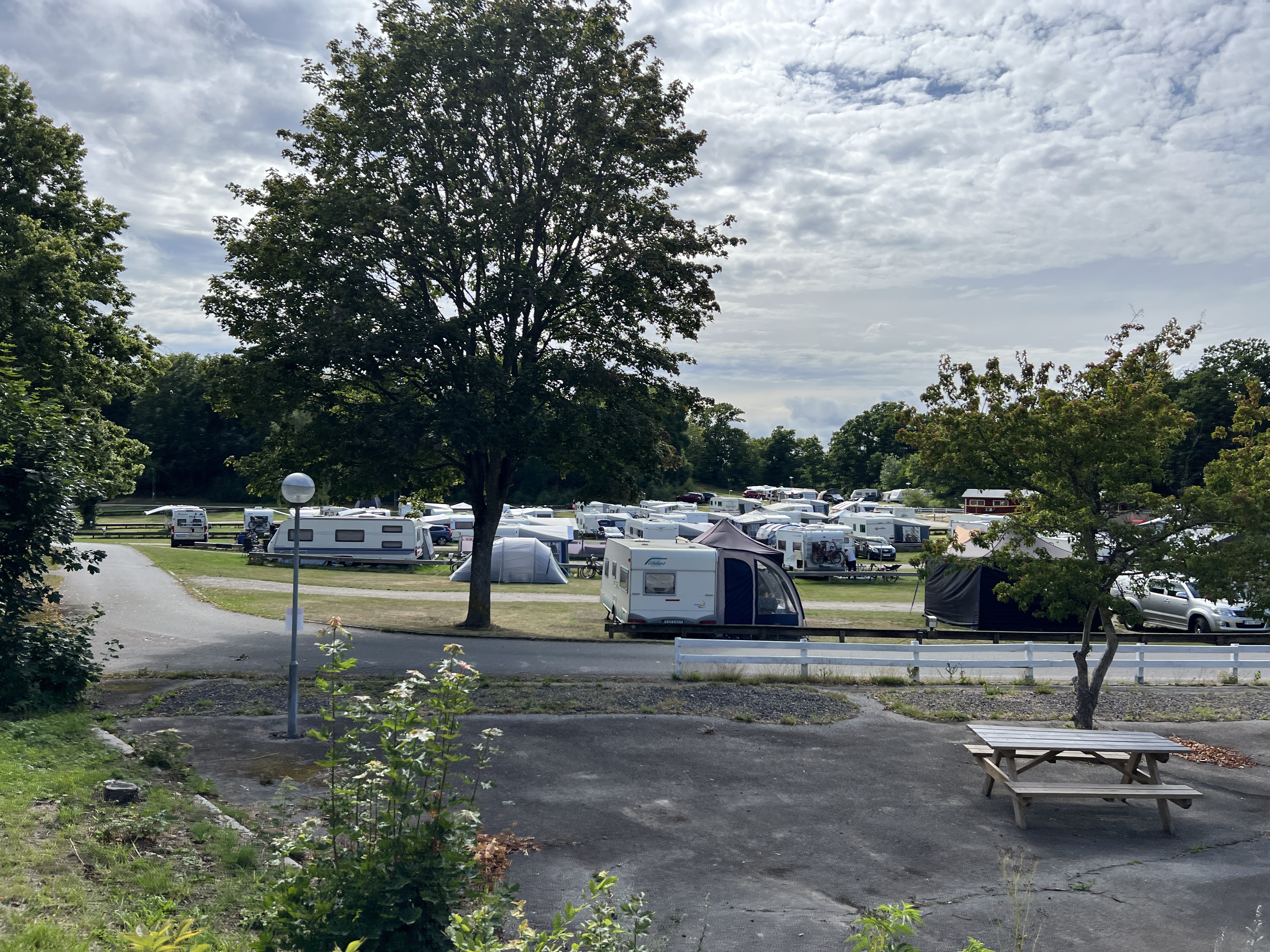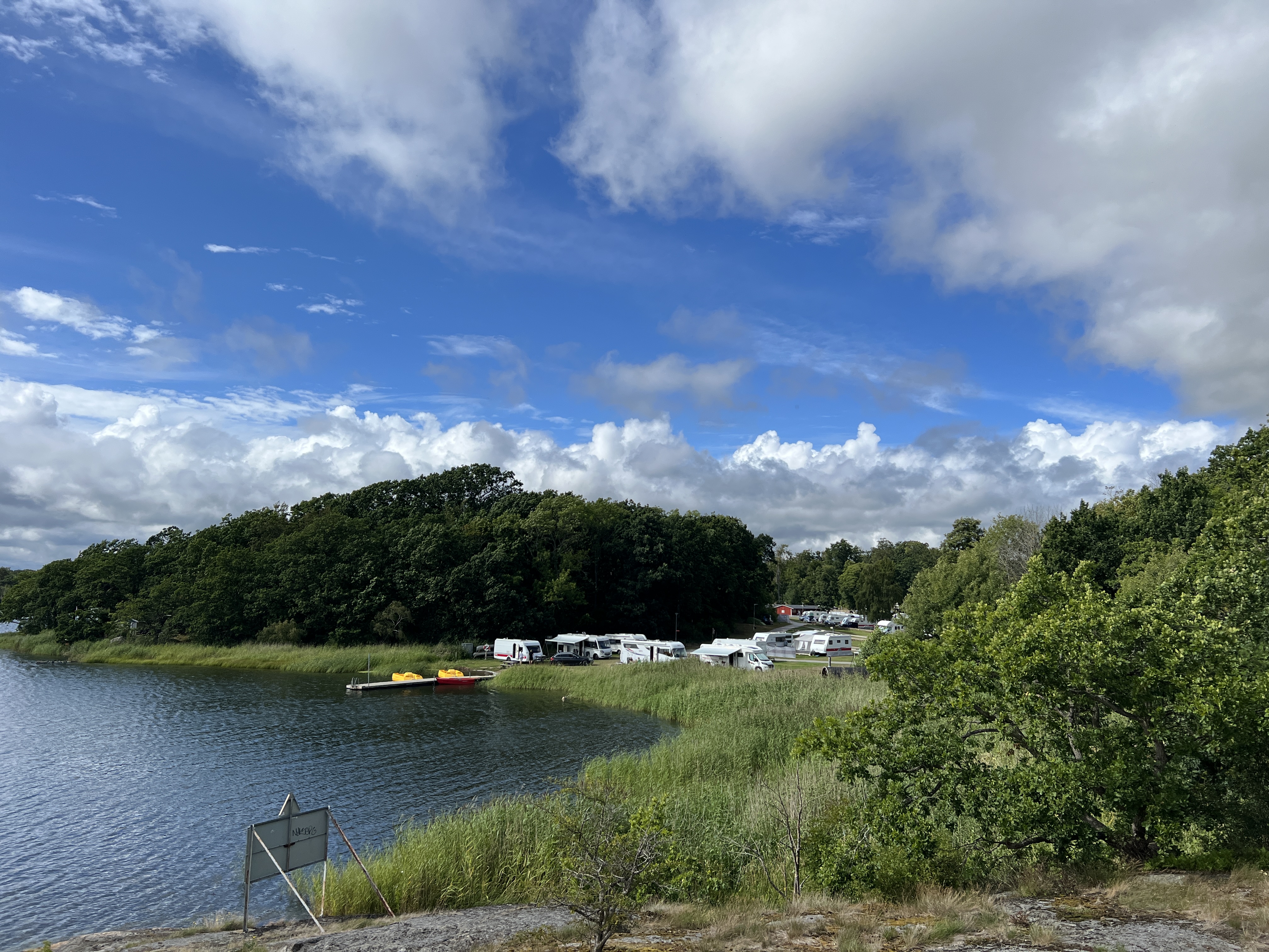 Ich hatte eigentlich gehofft, morgens von einer alten Dampflokomotive mit einer Tuten geweckst zu werden. Wenn man schon mal am Bahnhof steht, darf man ja mal träumen. Die Fahrt nach Karlskrona dauert nur ca. eine Stunde Fahrt. Wir fahren durch den Regen der Sonne entgegen. Wie gestern schon geschrieben, wollen wir von nun ab, das Angebot des Campingbetreibers nutzen und länger an einem Ort verbleiben. Wir kaufen noch schnell ein bevor wir auf dem Platz fahren. Dort erwartet man uns bereits und der Check-in geht schnell von statten.