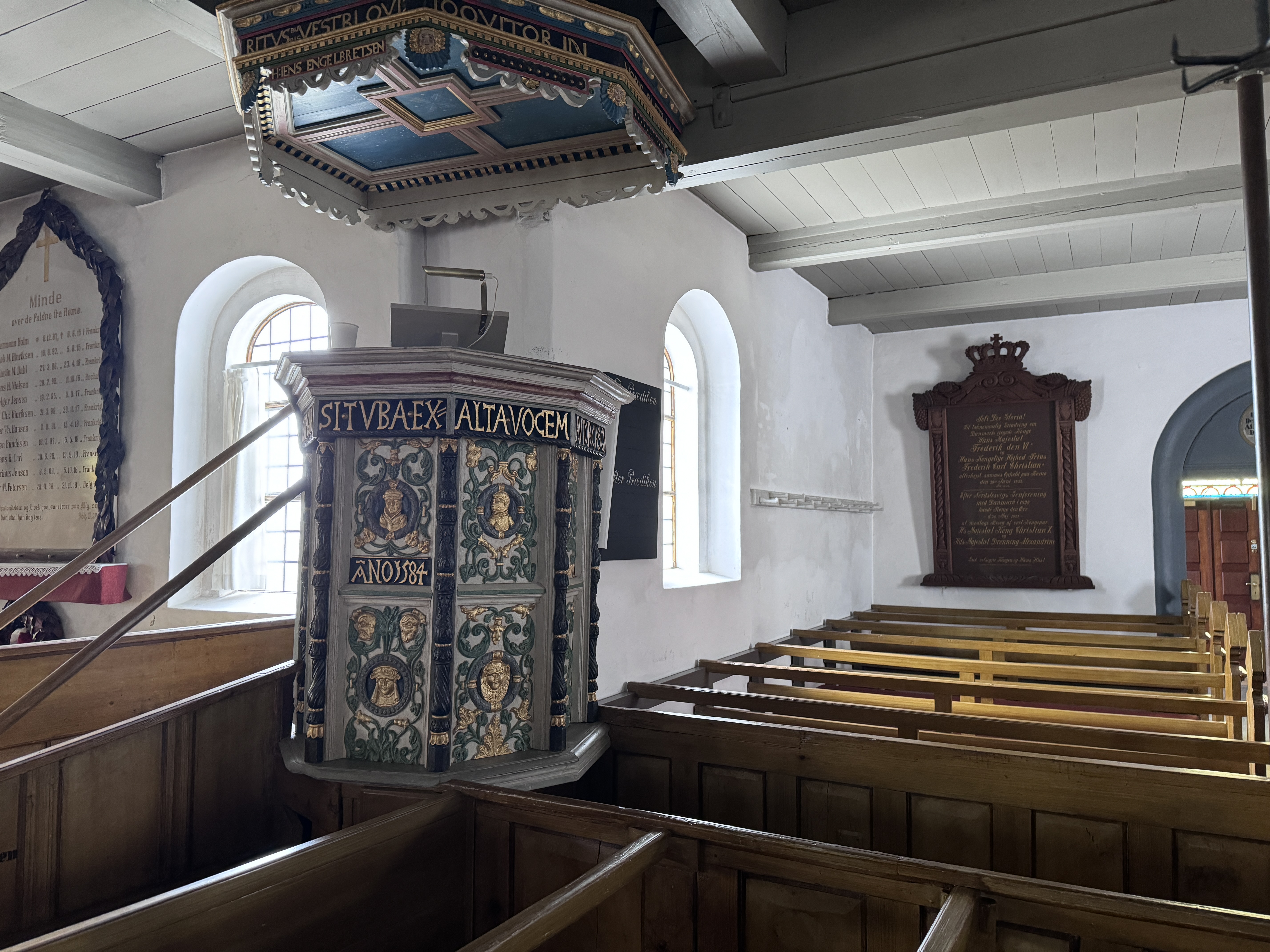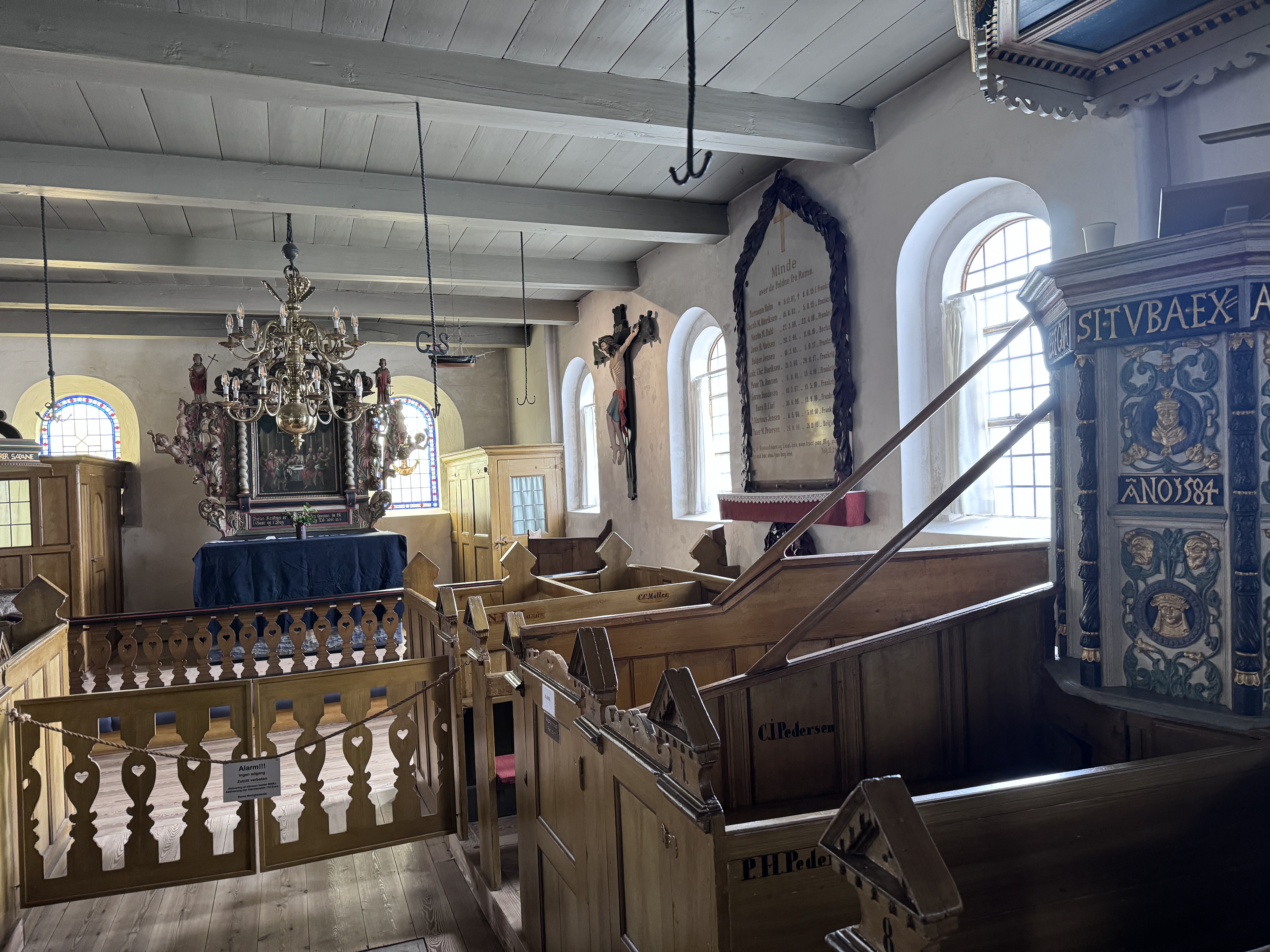 Die Kirche wurde in mehreren Etappen erweitert. Gegen Ende des Mittelalters erhielt die Kirche einen für Westschleswig typischen Stil mit 4 Giebeln und einen pyramidenförmigen “trockenen Spross”. Im Zuge des ersten wirtschaftlichen Aufschwungs ließen sich mehr Menschen auf Römö nieder und König Christian IV befahl 1623 den Ausbau mit Fertigstellung des nordwestlichen Seitenschiffs in 1626, genannt “Noderkvist”.