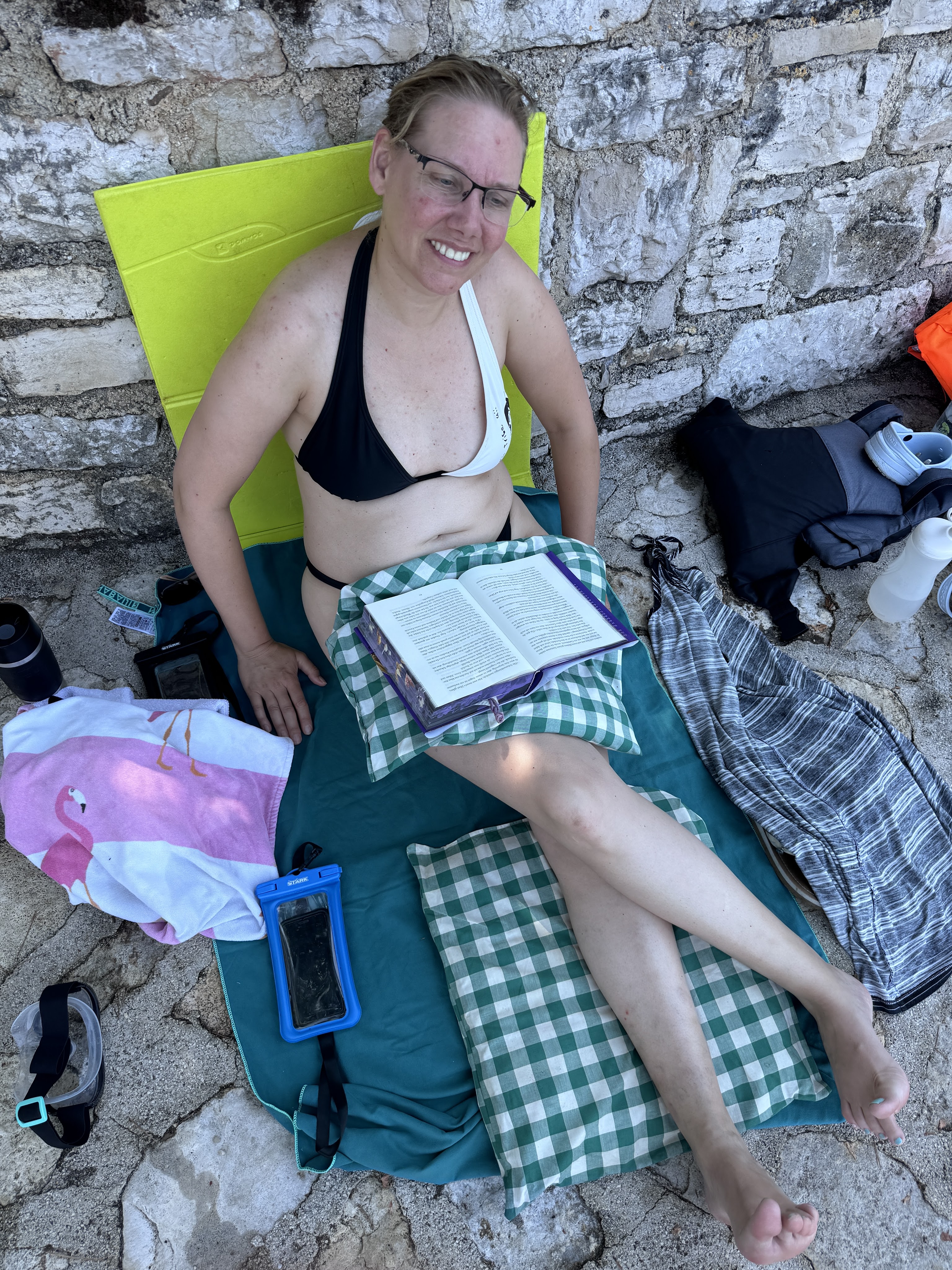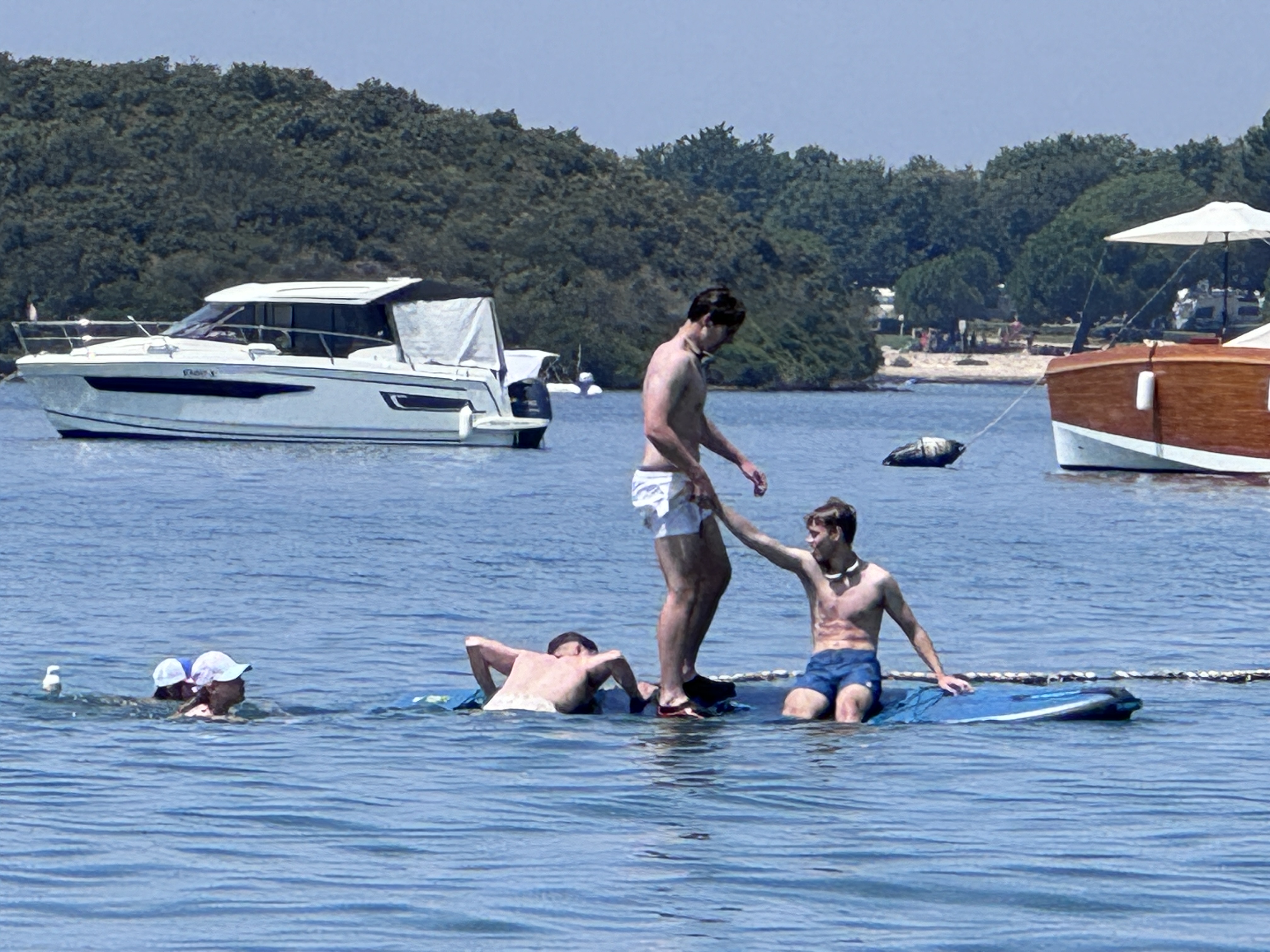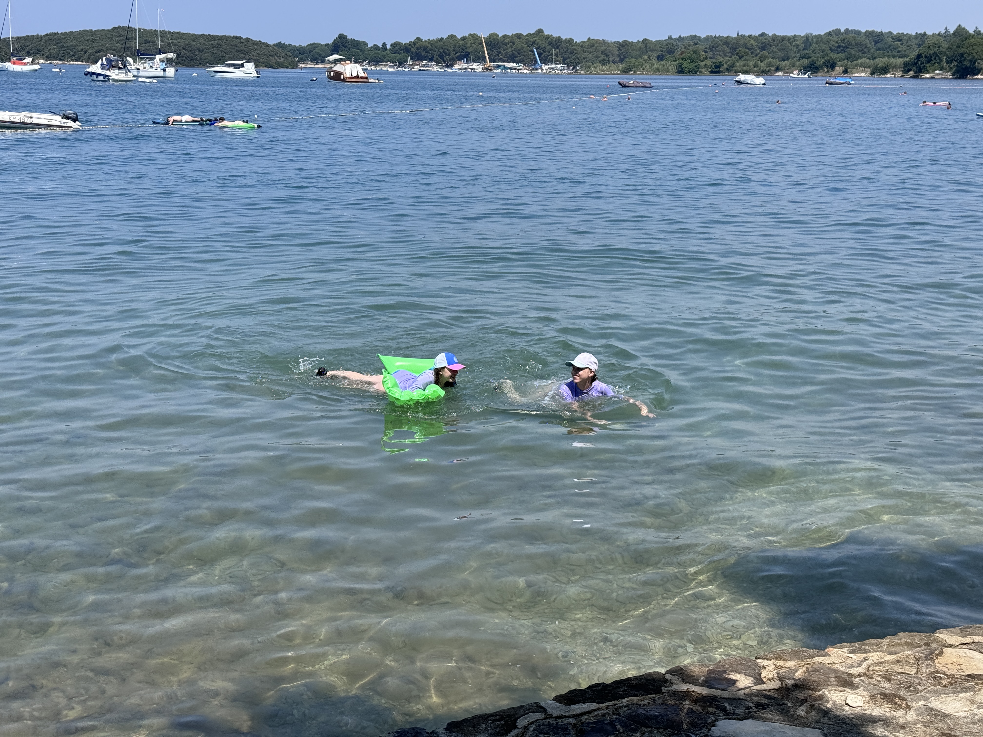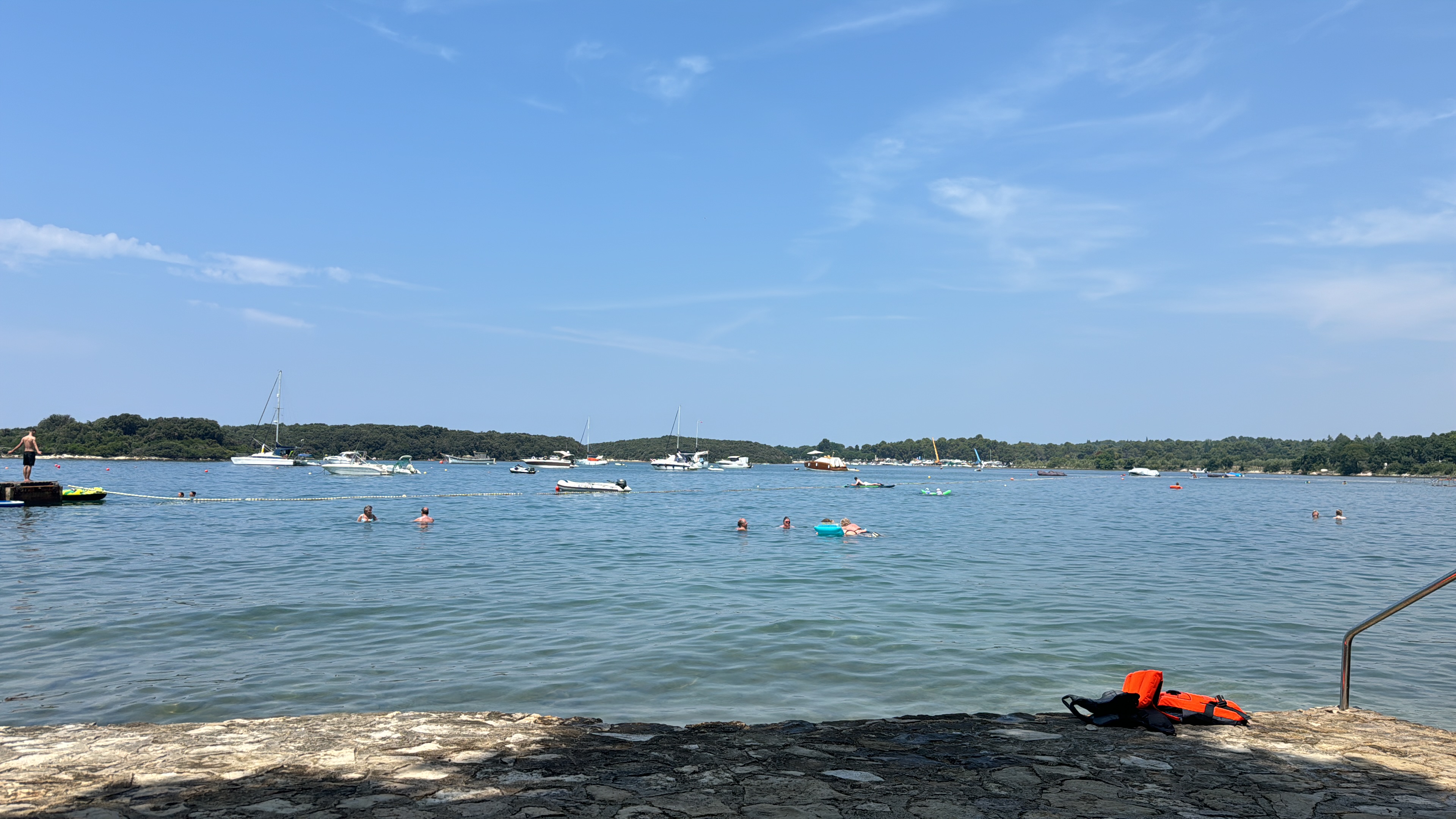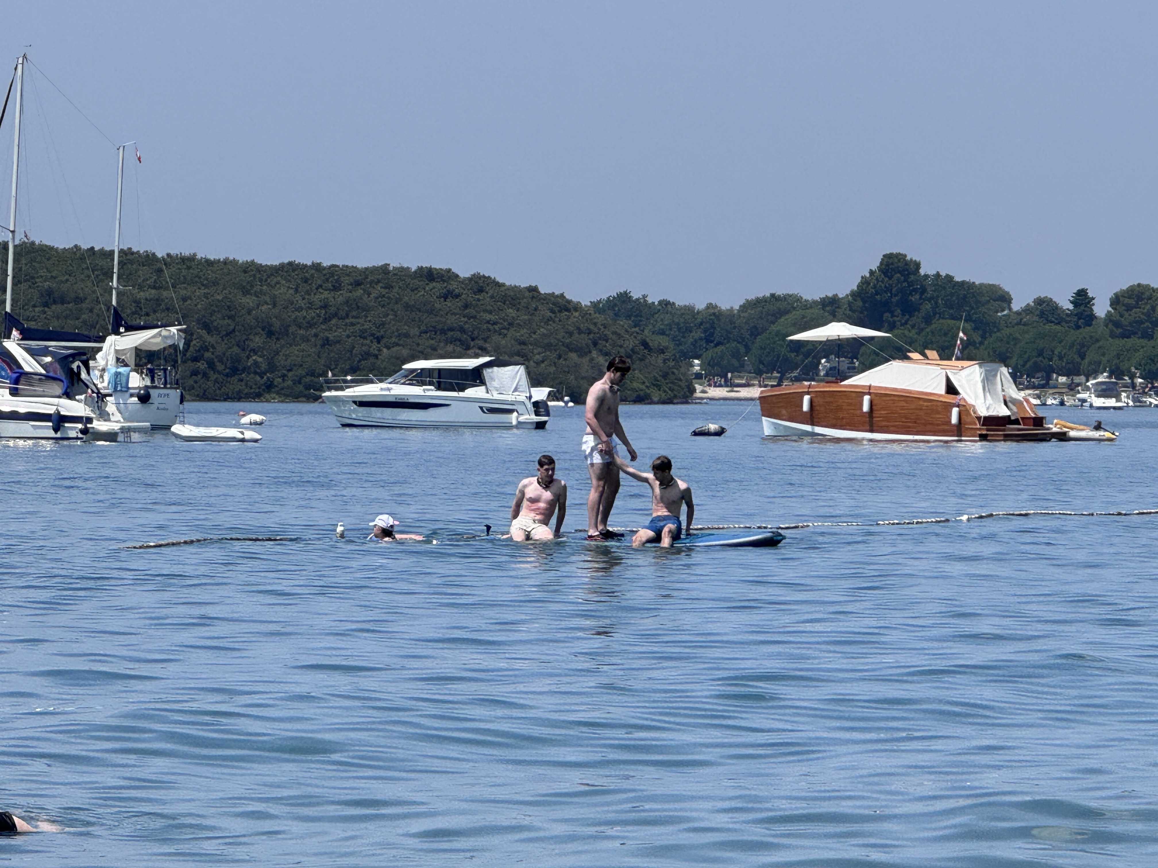 Nachdem gestern das Spiel wie gewpnscht ausgegangen ist, wollen wir heute mal in die Ortschaft Vrsar gehen. Heute am 10.07.2024 schwinge ich mich erstmal auf den E-Scooter und rase zum Bäcker der nur ein wenig außerhalb des Campingplatzes liegt. Für 20 Brötchen bezahle ich 12,00 Euro und die sind erheblich besser als die auf dem Platz verkauft werden. Wir haben heute vormittag ncihts großes vor, so dass wir alle ein wenig ausspannen. Die Kinder gehen in das Wasser oder besser gesagt, kommen nicht mehr raus. Ich springe zwischen Parzelle, Wasser und Dusche am Strand hin und her.