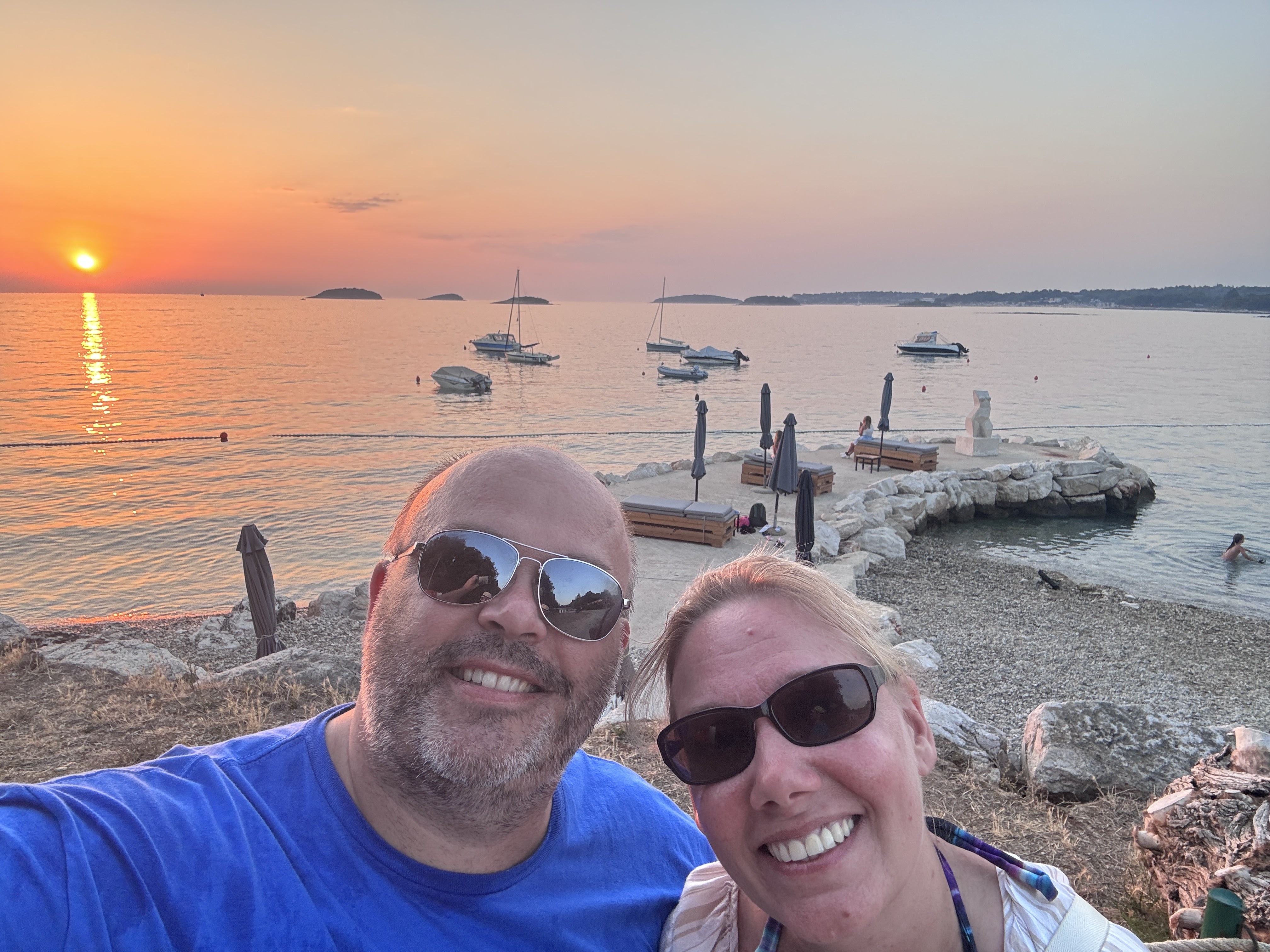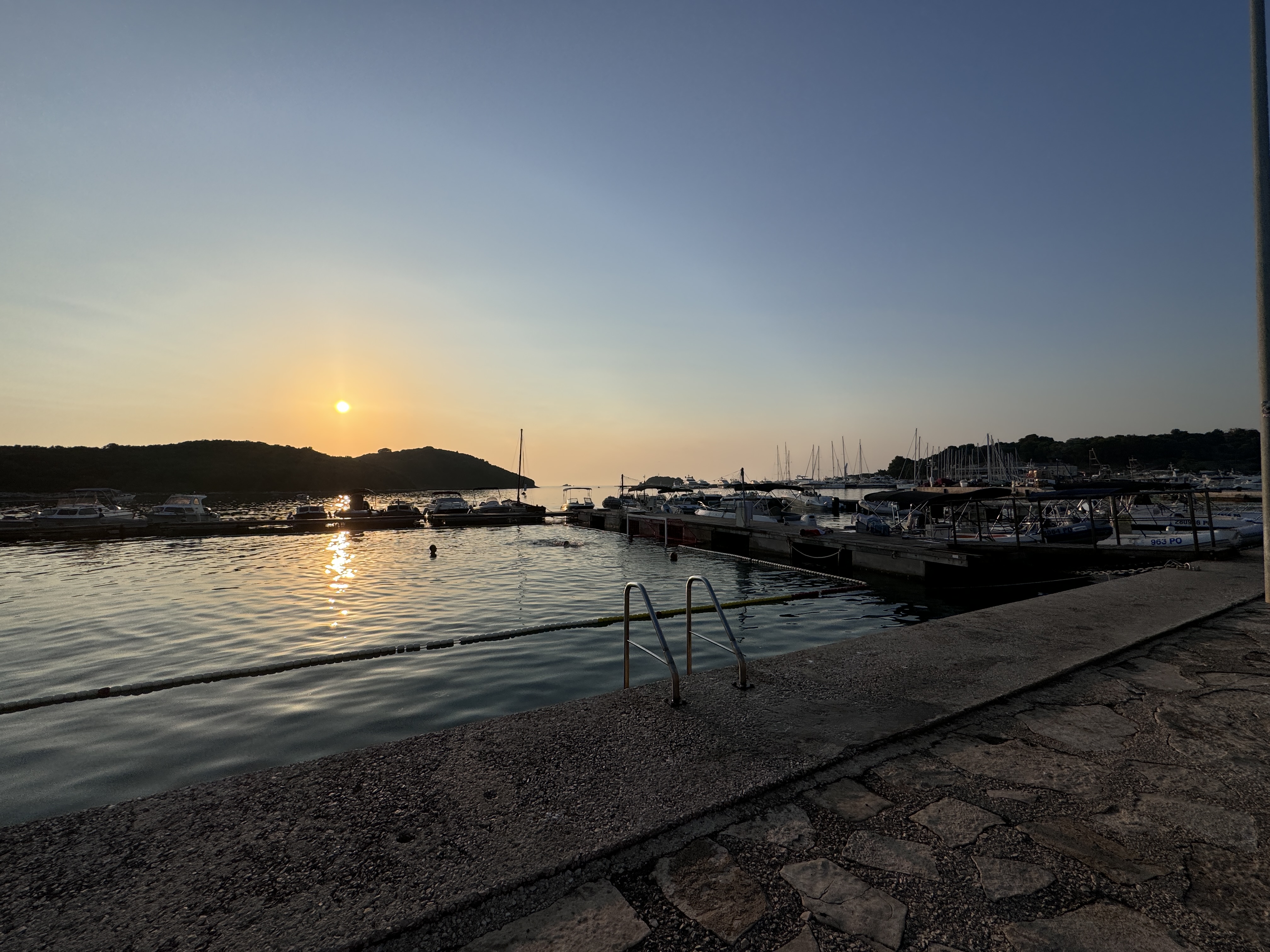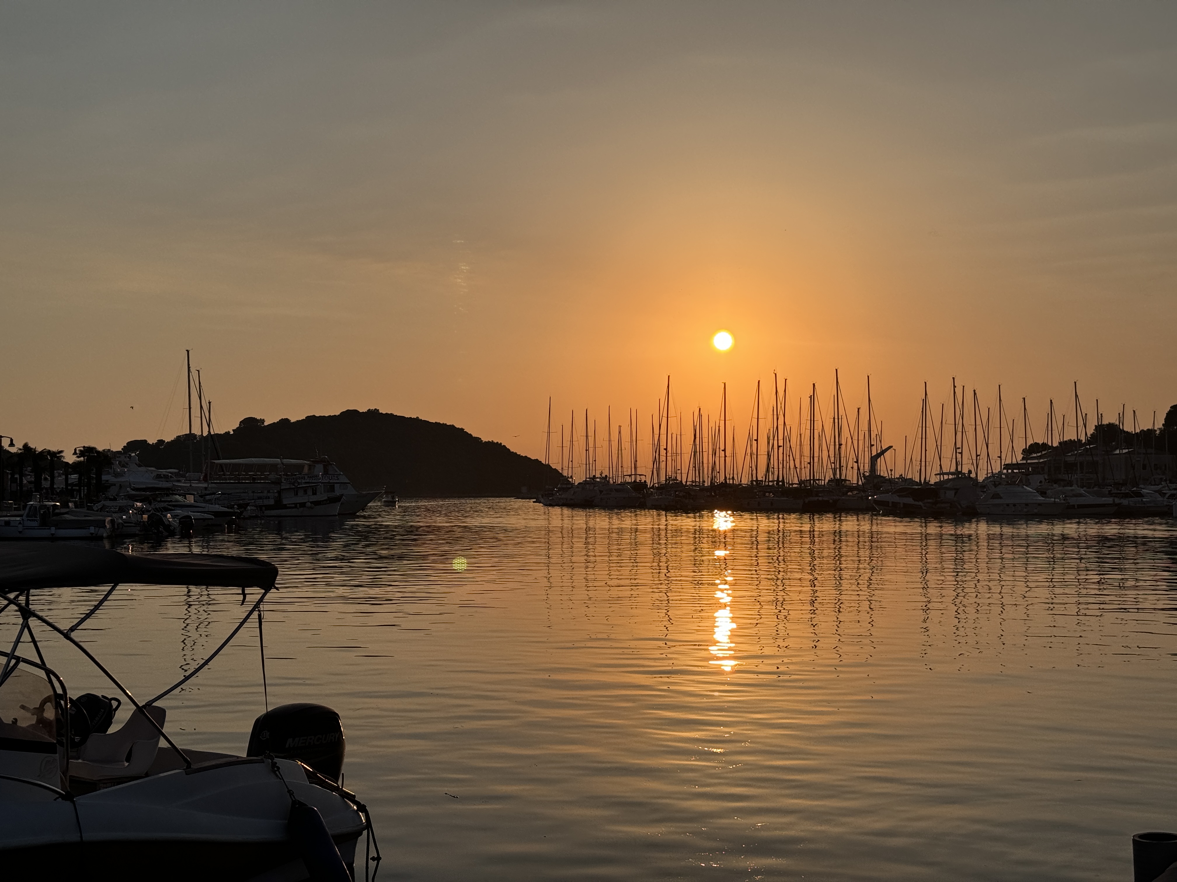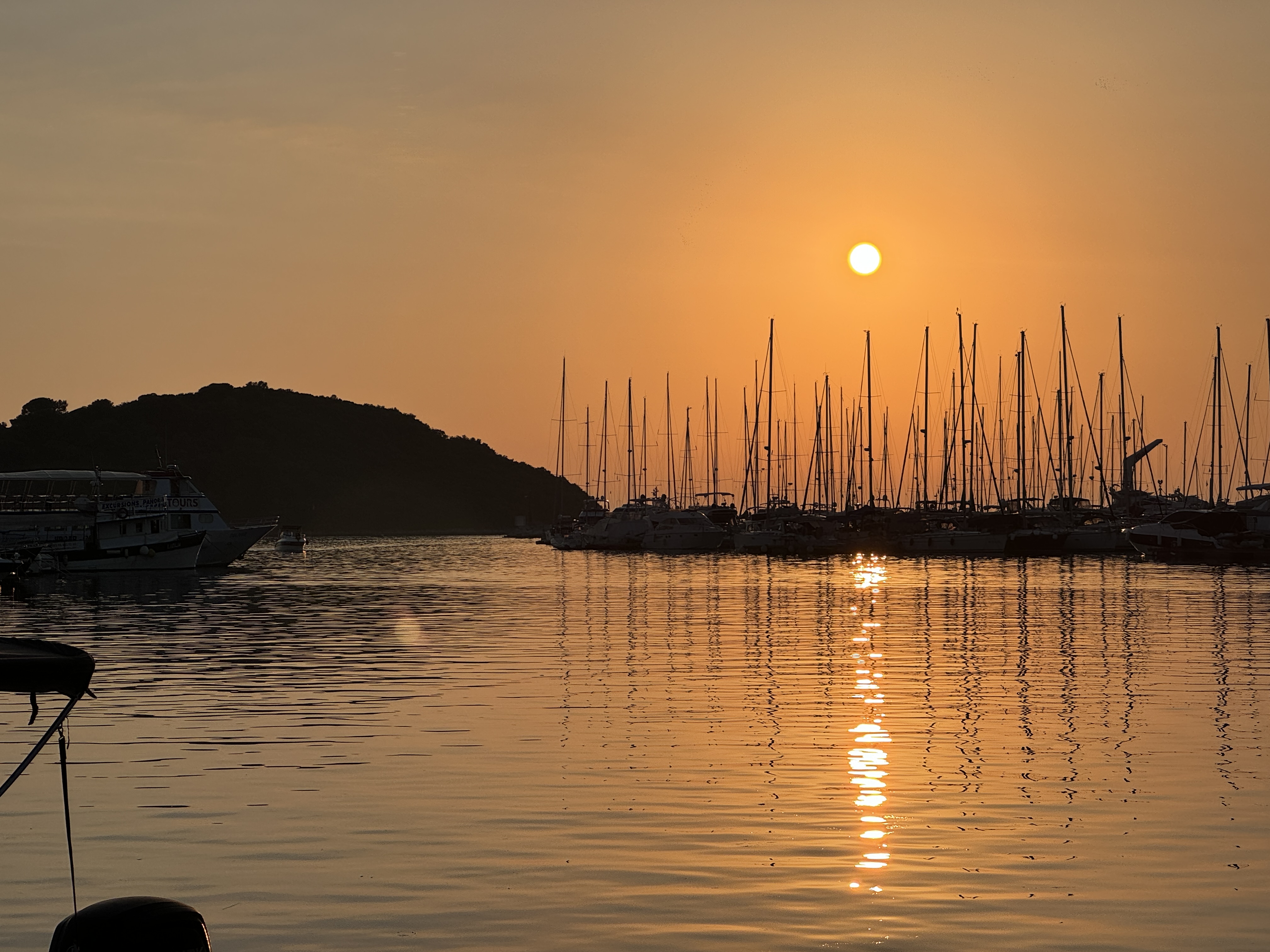 Dide Abendstimmung mit der untergehenden Sonne ist herrlich. Es sind zwar gefühlt immer noch 30 Grad aber egal. Wir spazieren Richtung Platz am Ufer entlang an Restaurants vorbei und Liegeplätzen. Ich möchte noch das zweite Halbfinale der EM schauen zwischen Niederlande und England. Mein Favorit wäre Niederlande. Mal schauen ob es was wird. Morgen muss ich mal wieder einkaufen. Frau sagt wir wollen grillen und wenn die Frau was sagt.