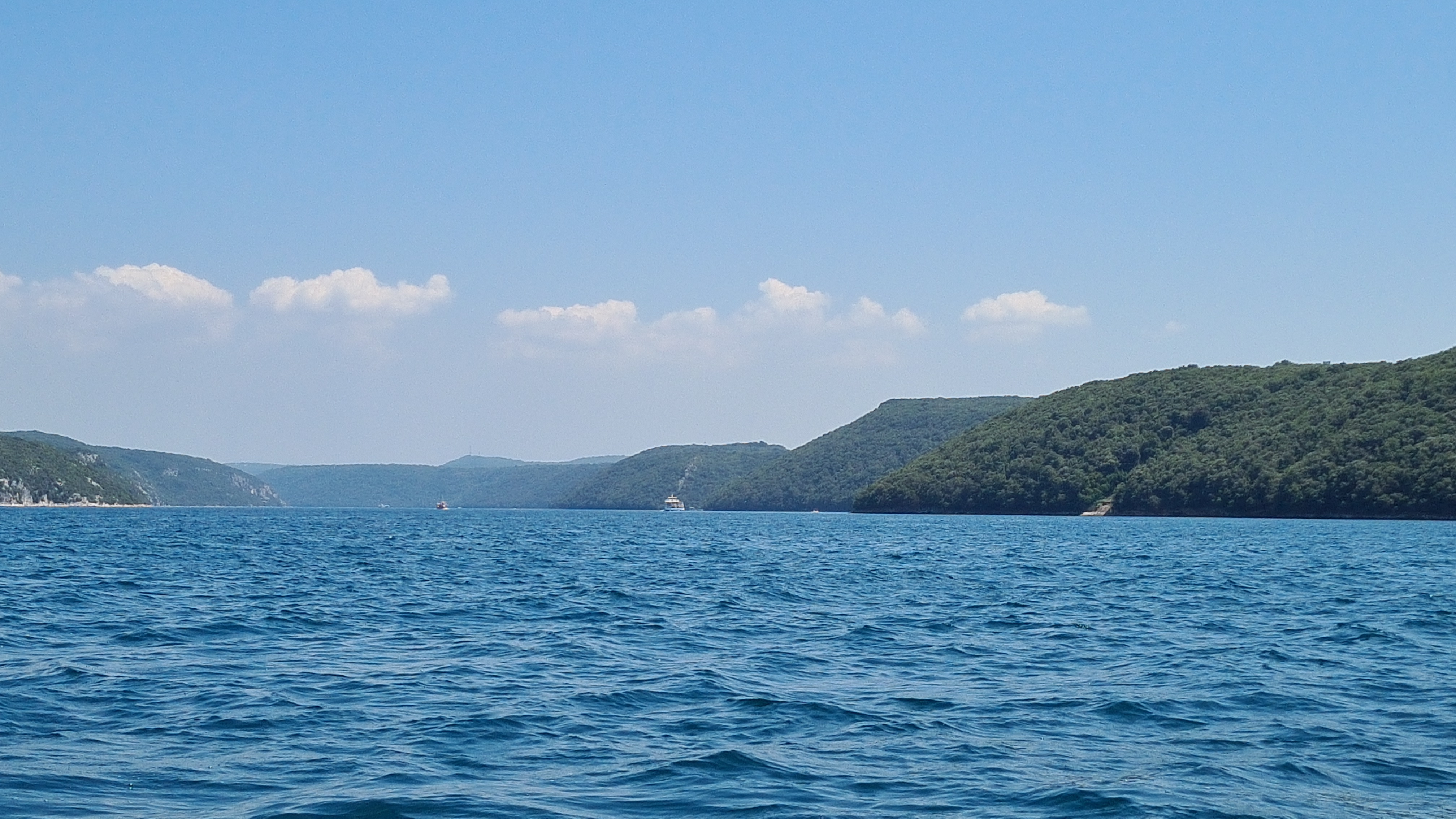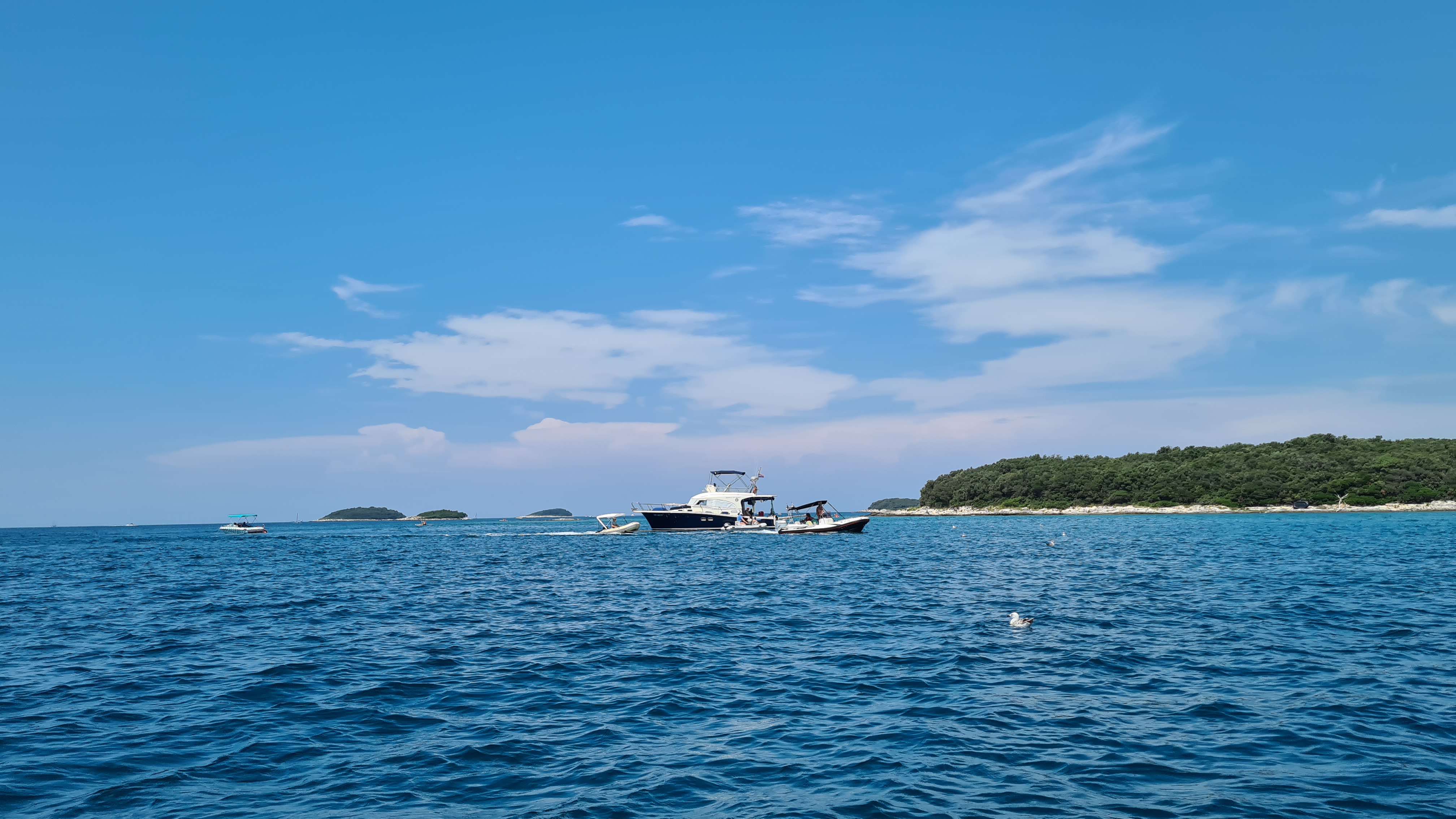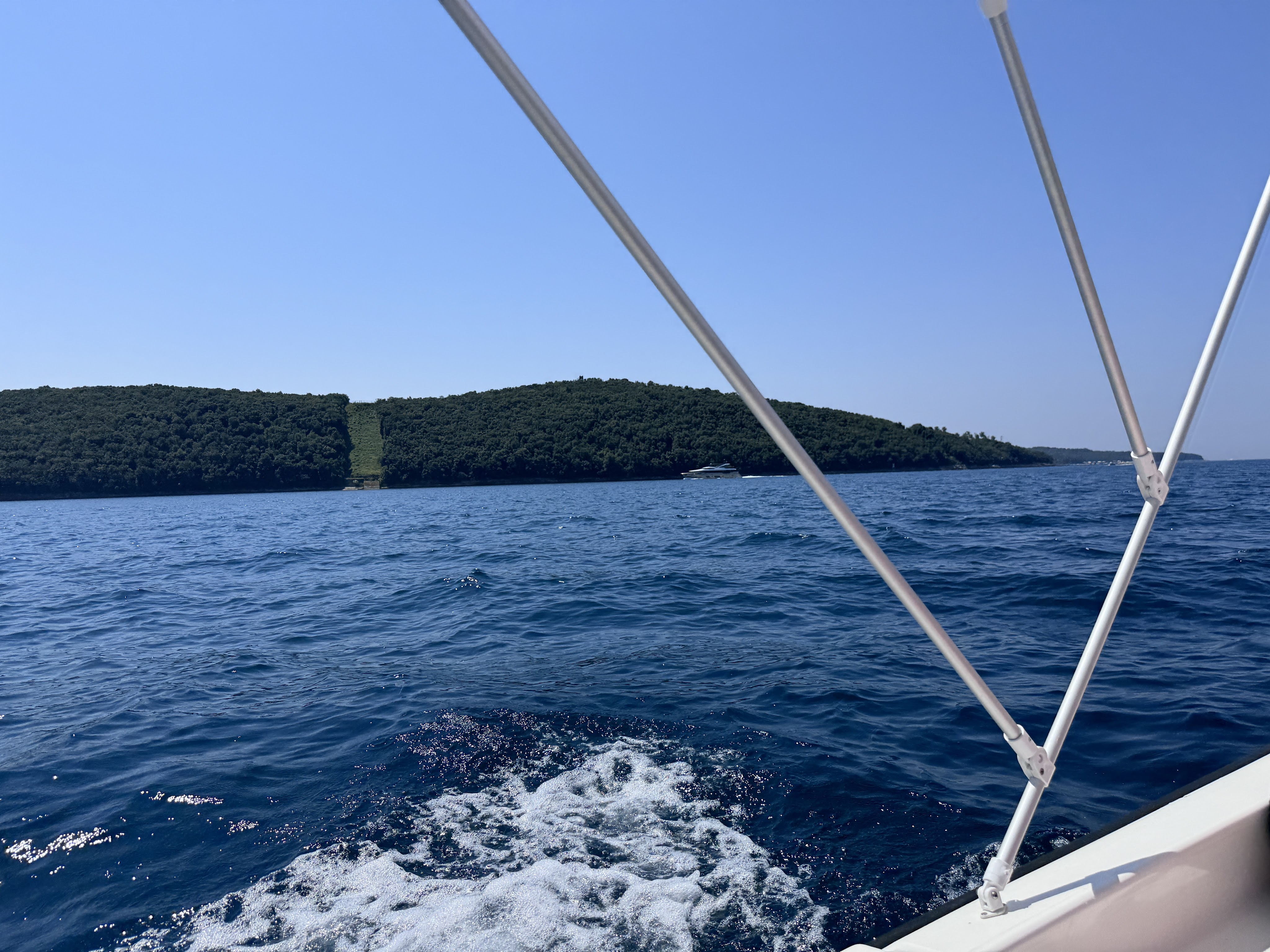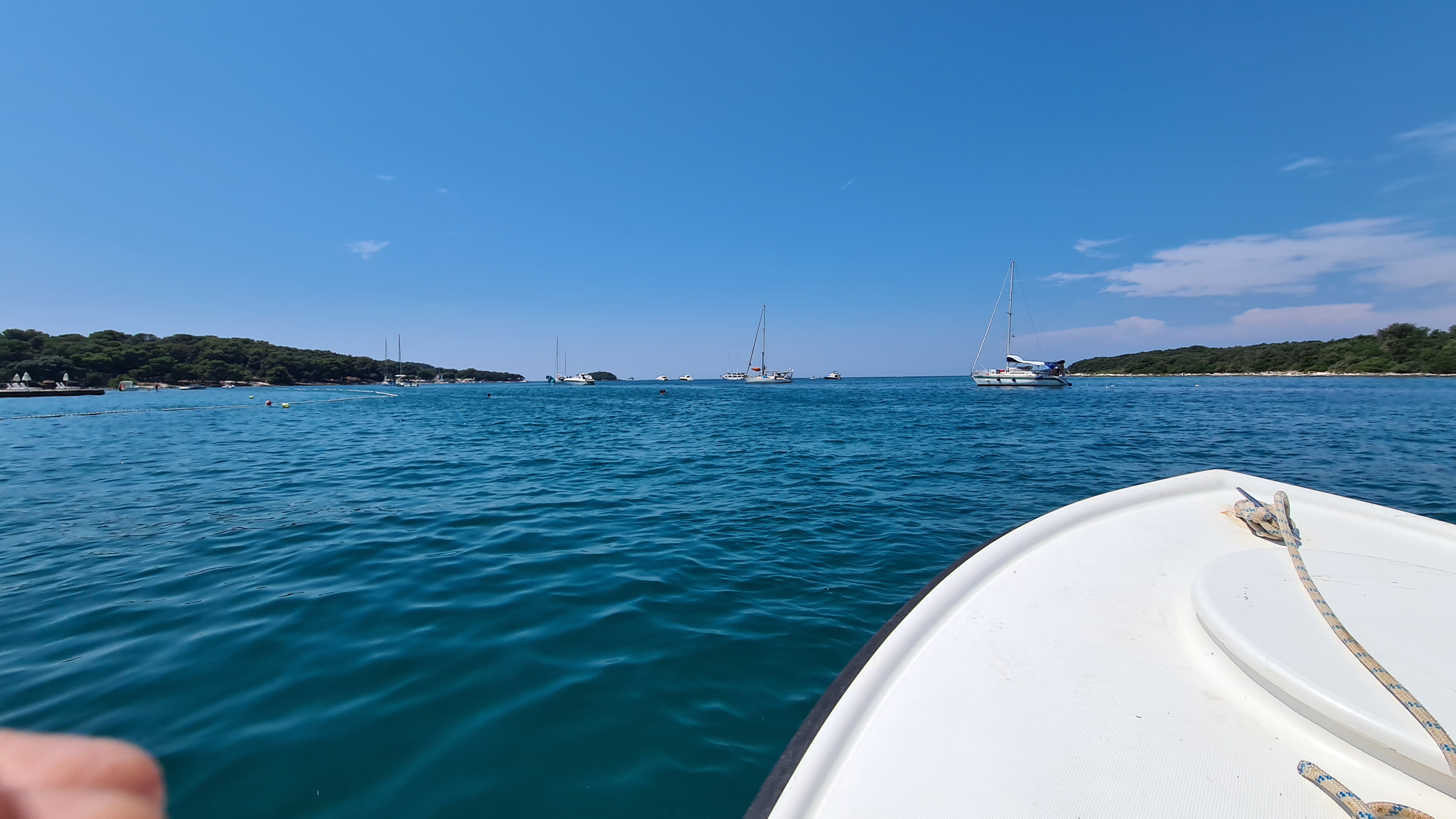 Um kurz vor 10:00 Uhr sind wir am Anleger und das Boot ist schon da. Es liegt am Ponton und wartet auf uns. Es hat einen kleinen Außenbordmotor der Marke Yamaha und hat glaube ich nicht mal 10 PS. Als erste fahre ich mit den Jungs auf das Meer hinaus. Mal schauen wir weit wir kommen.