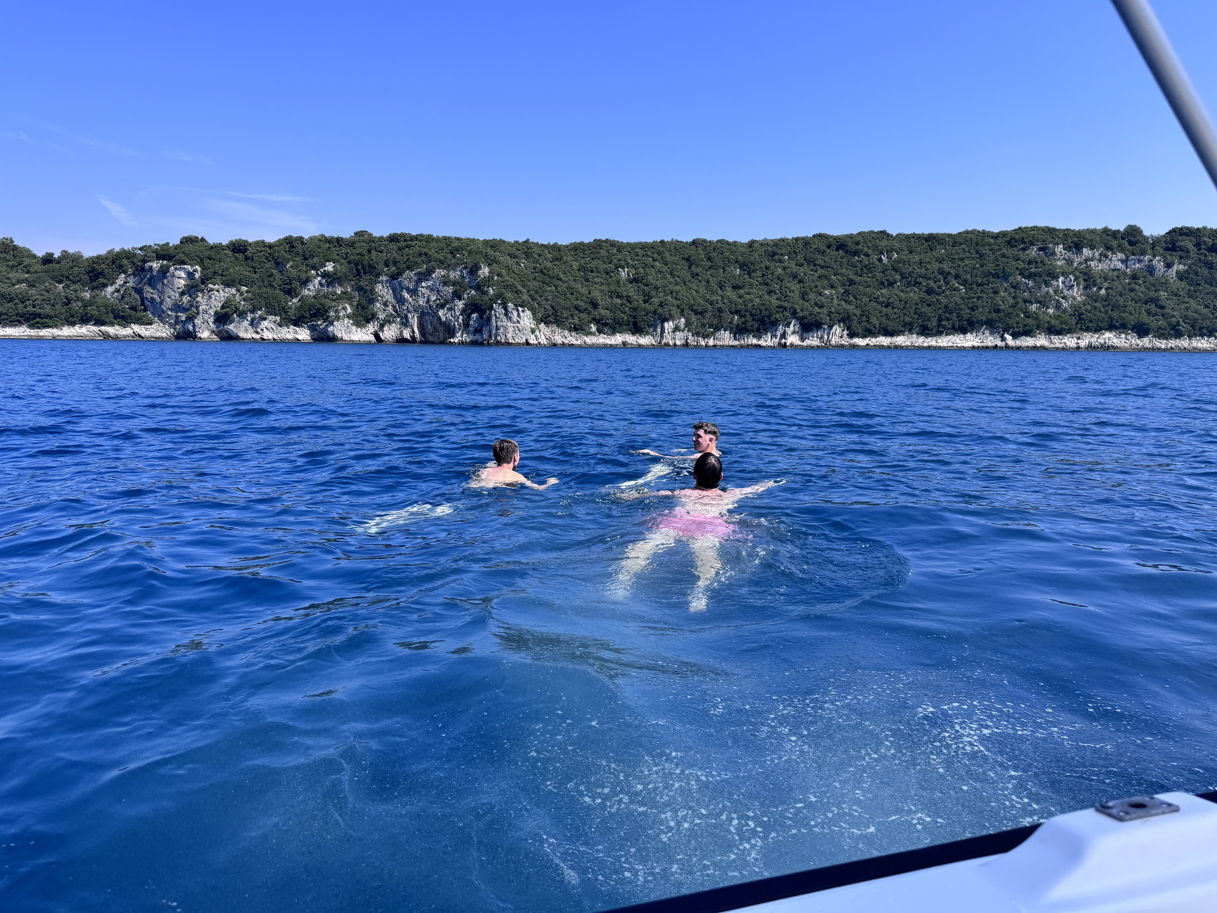 Auf Wunsch der Jungs etwas dichter an dem Strand vorbei mit den nackten Gästen merke ich wie die Sonne doch erheblich runterbrennt. Nach ca. 2 1/2 Stunden sind wir wieder vor Ort und die Damen der Runde dürfen einsteigen. Die Jungs wollen nun mal wieder chillen.