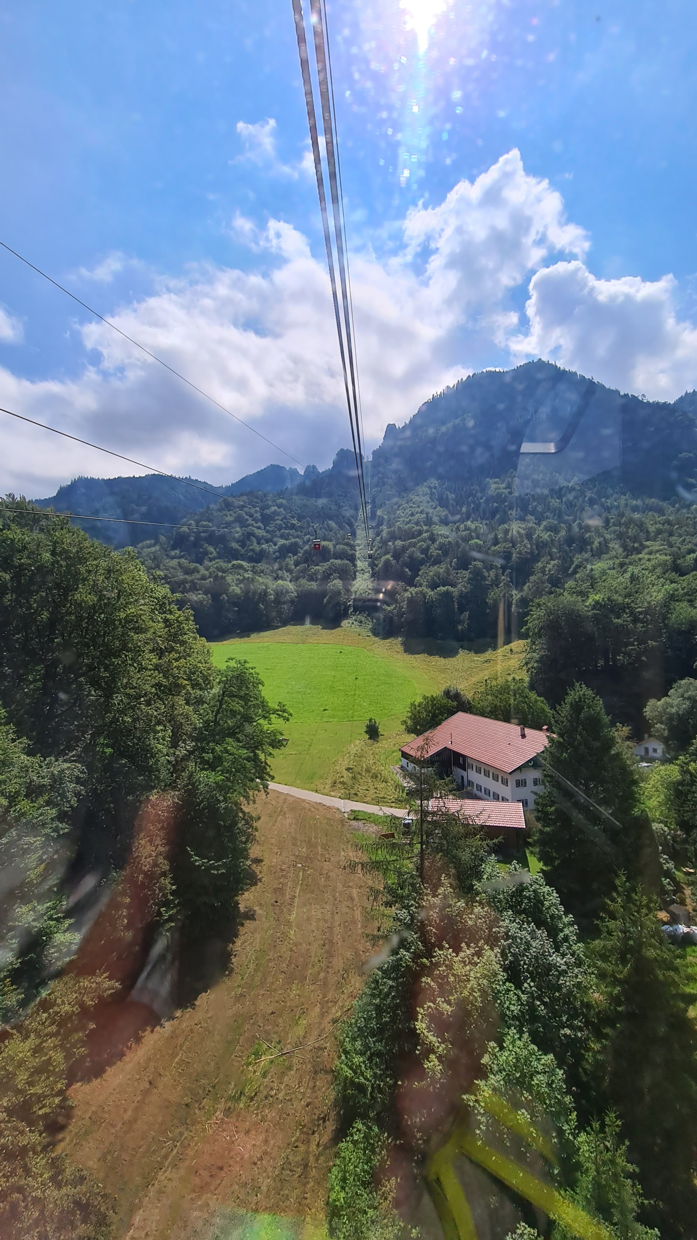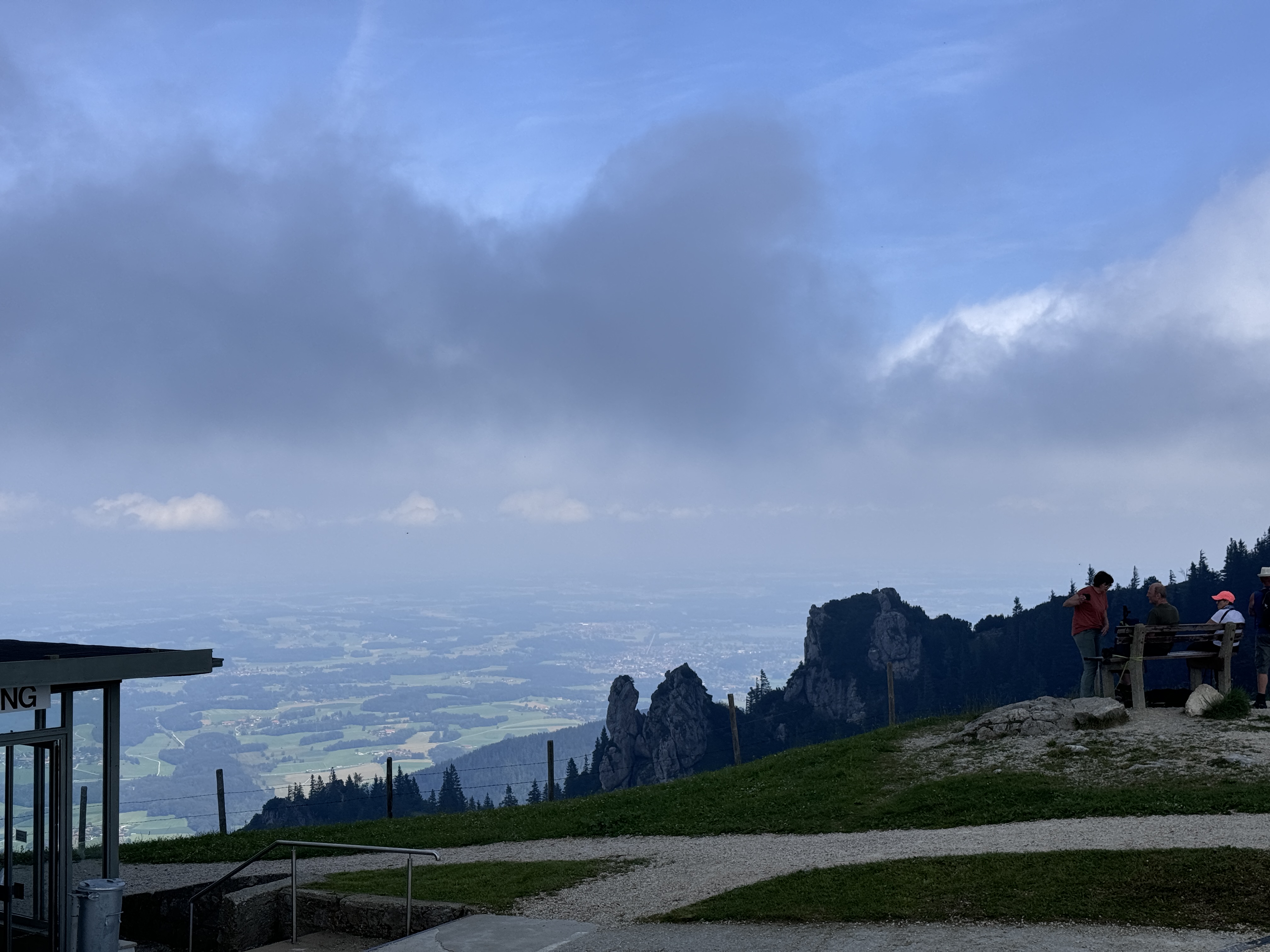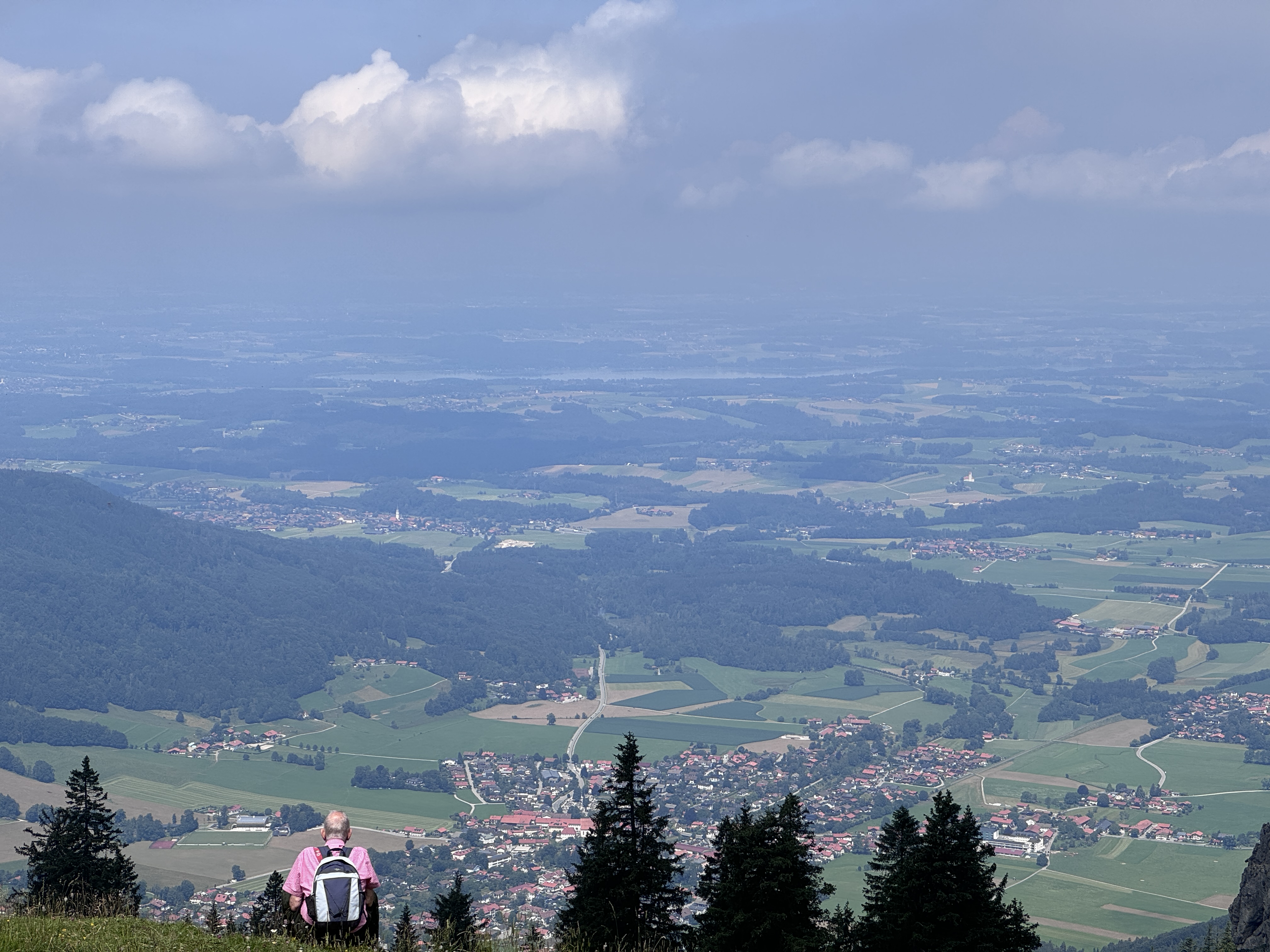 Heute am 19.07 wollen wir weiterfahren. Nicht weit. Wir fahren in den Ortsteil Hohenaschau und fahren dort auf den Parkplatz der Kampenwandbahn. Am Rande des Parkplatzes auf dem Grünstreifen eingeparkt stören wir keinen mit unserem etwas längeren Gefährt. Sandra packt den völlig überdimensionierten Rucksack mit Fressalien aller Art und Getränken. Wer soll das alles essen?