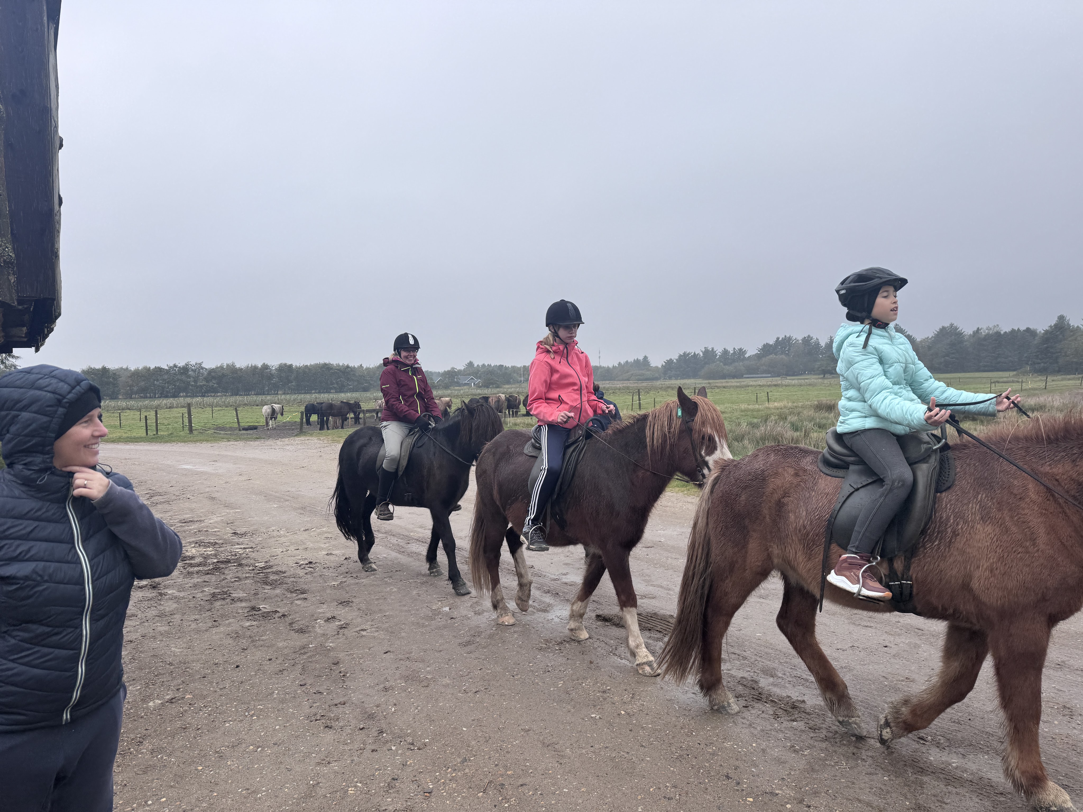Auf den Rücken der Pferde soll das Glück der Erde liegen. Nachdem sich gestern die Frau neben Kind für eine vielen Pferdetouren angemeldet hat, ist das Hauptziel des heutigen Tages festgelegt. Da die Frauen die Tour nicht umsonst machen dürfen muss noch schnell Bargeld besorgt werden. Am Anfang des Platzes befindet sich ein Geldautomat der Firma „Euronet“. Diese gelbblauen Automaten sind häufig in touristischen Gebieten zu finden. Ich begebe mich nun zu dem besagten Gerät und versuche die verlangte Summe abzurufen. Die Maschine rödelt und rödelt und irgendwann sagt mein Handy das die Bargeldabholung erfolgreich war und der Automat erzählt mir was von einem Maschinenfehler. Kein Bargeld aner auch keine Gebühren wurden abgezogen. Na super. Nach einer Minute war die Bedienoberfläche des Automaten wieder wie vorher, also nochmal. Was soll ich sagen, gleiche Problematik. Na Super Sache. die Quittungen mit dem Nachweis eingesammelt und zurück zum Mobil. Auf das Fahrrad geschwungen und ab in den Ort. Automat gefunden, Geld bekommen und wieder zurück. Nun galt es mal die Buchungen zurückzubekommen. Internetseite geöffnet und das Kontaktformular gefunden. Alle Daten die man benötigt sind auf den Quittungen enthalten und so ging das schnell von statten. Das Geld wurde auch im Laufe des Tages zurückgebucht. Um 13:30 sind wir dann alle unterwegs zur Reitstation. Man soll so 30-20 Minuten vorher vor Ort sein. Um 14:00 Uhr geht es dann los und die Damen reiten gen untergehender Sonne. Ach nee Sonnenuntergang ist erst später. Zum Glück hat der Regen aufgehört und die Gruppe kann relativ trocken die Tour durchführen.